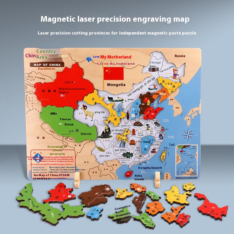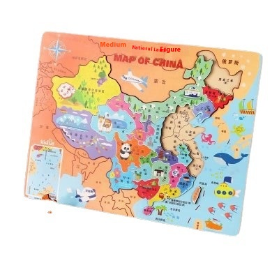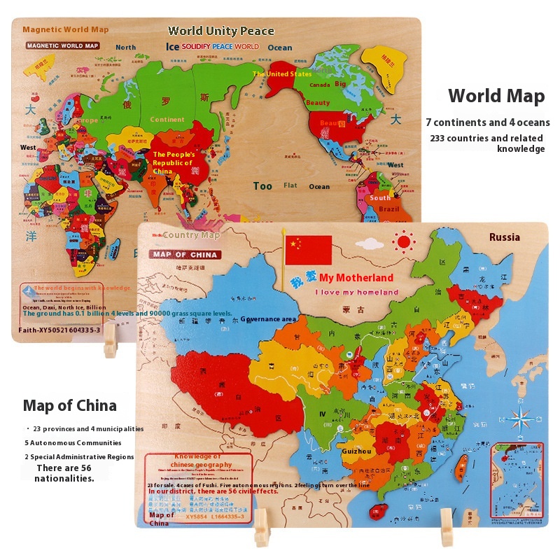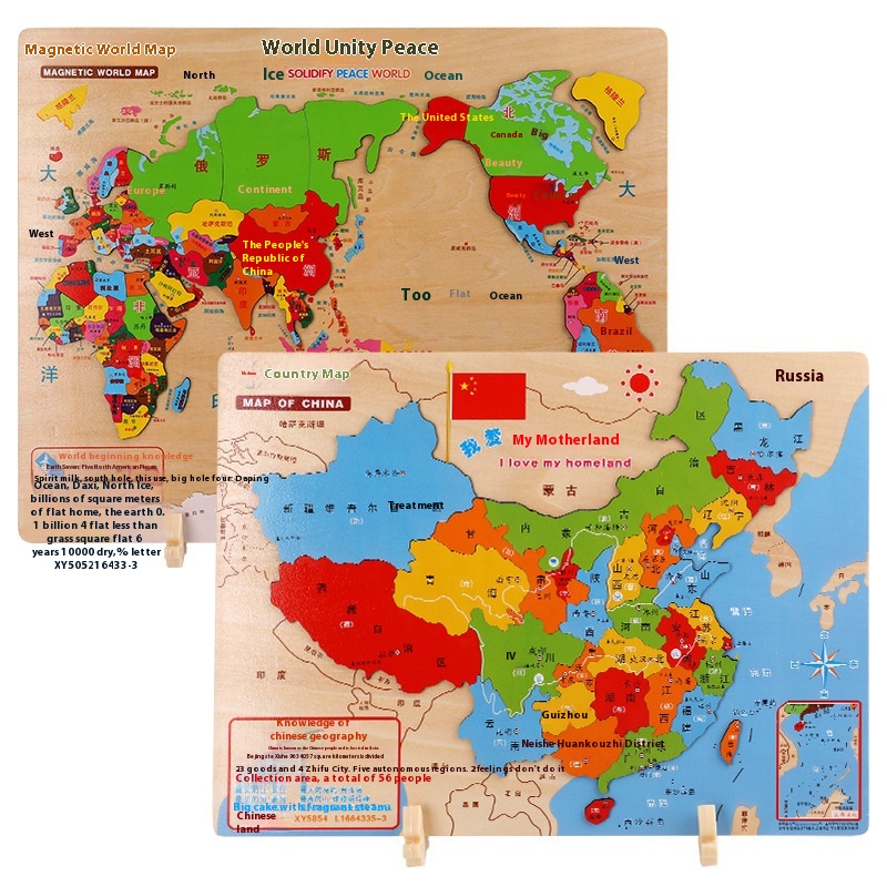 China Map Wooden Puzzle Magnetic Large World Plane Early Childhood Education Children's Educational Toy Puzzle Geographical Cognition