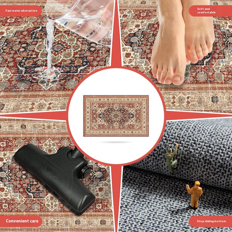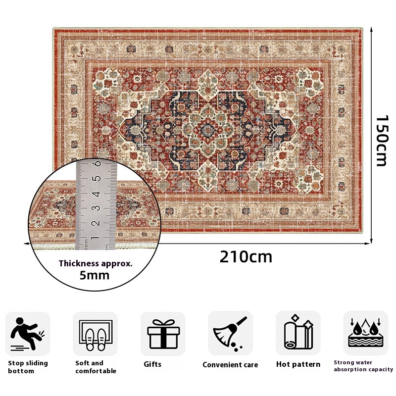Large Size Bedroom Living Room Persian Floor Mat Full American Retro Carpet Mat Short Plush Tpr Washed Bottom Carpet