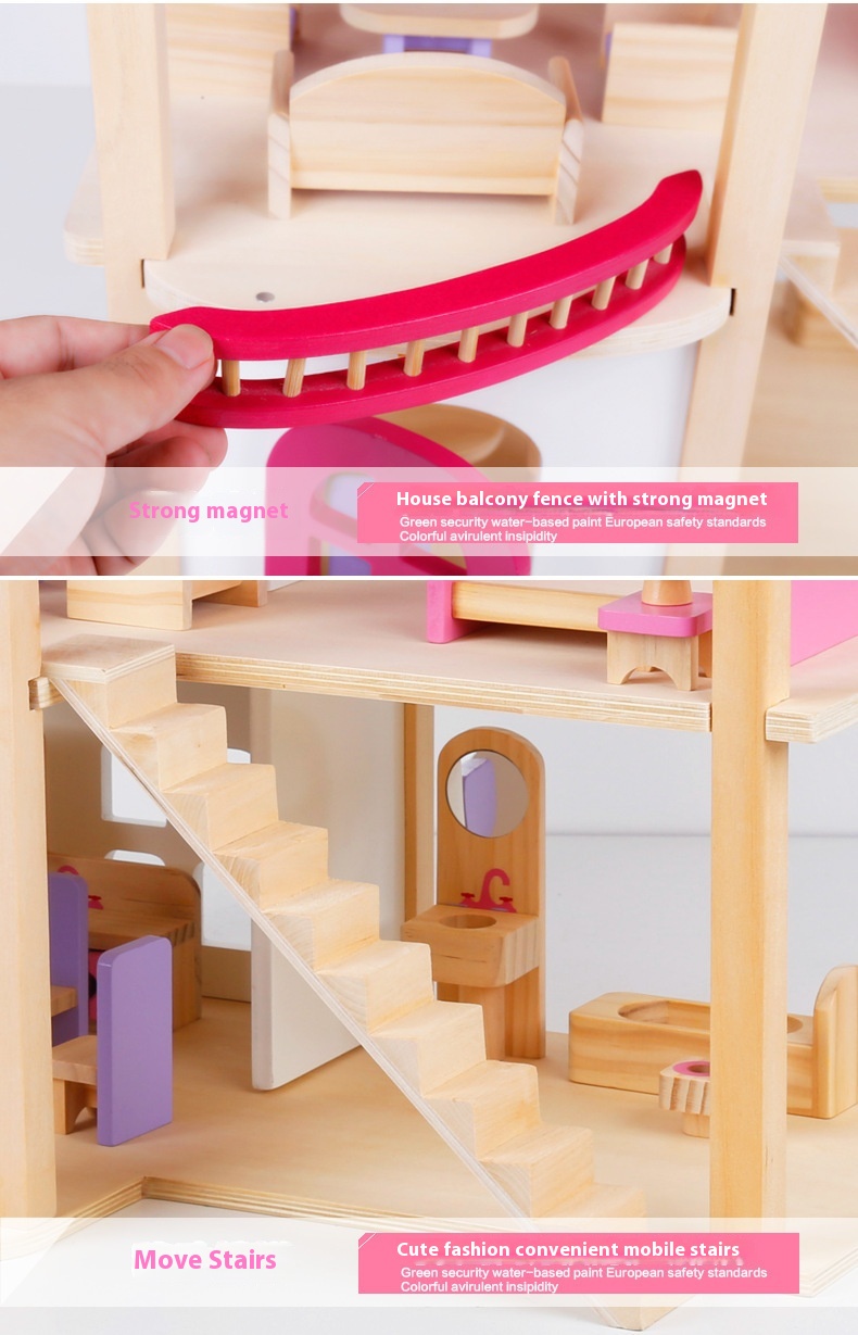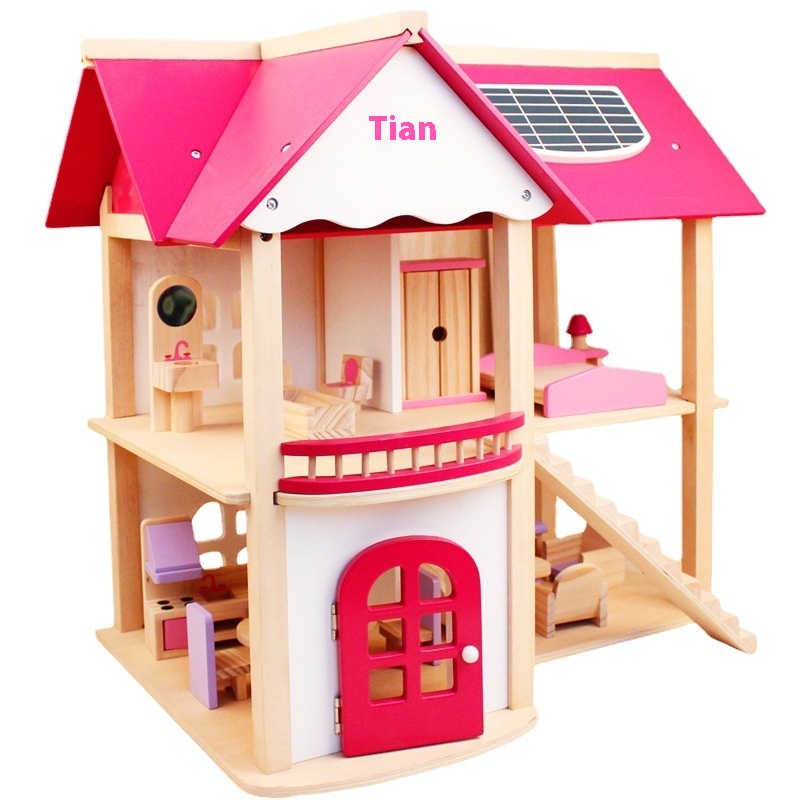 Pink Princess Doll House Villa Cabin Play House Creative DIYHouse Puzzle Assembly Wooden Toys