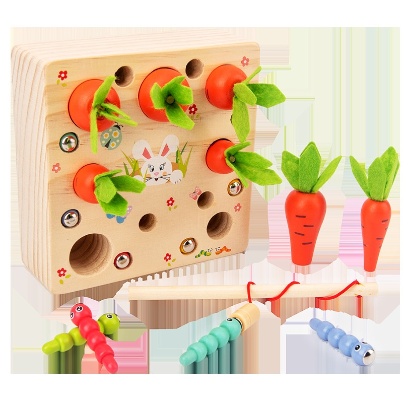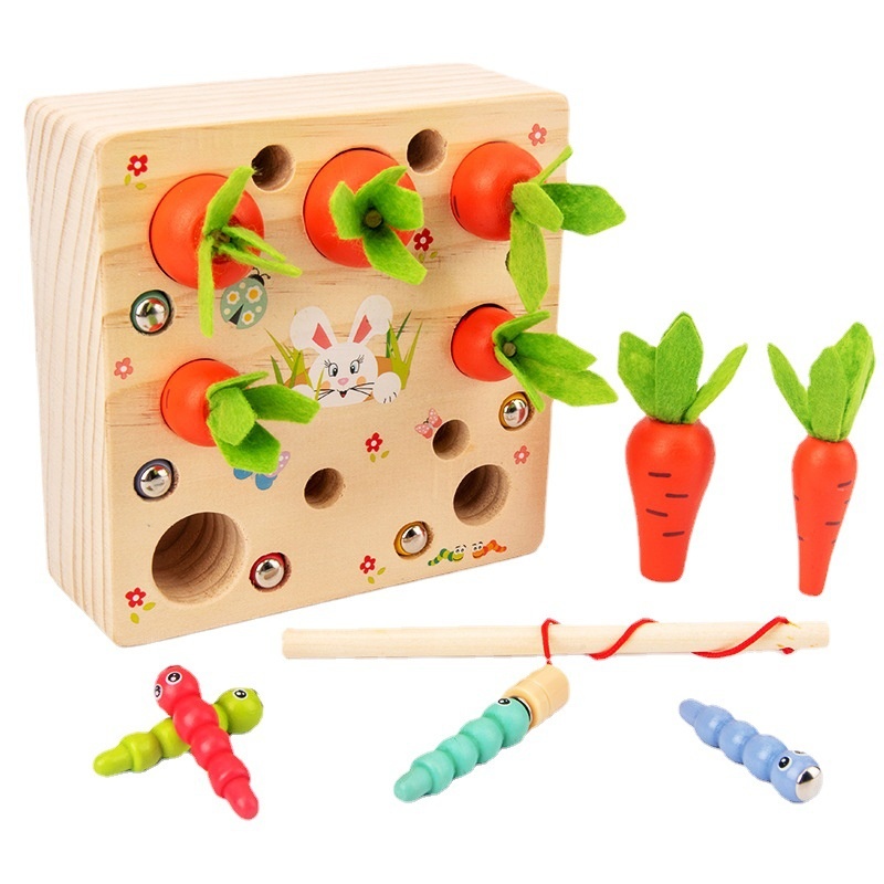 Children's Simulation Pulling Carrots And Catchingects Toys Kindergarten Puzzle Game3-5-6 Years Old Girls And Boys Wooden Toys