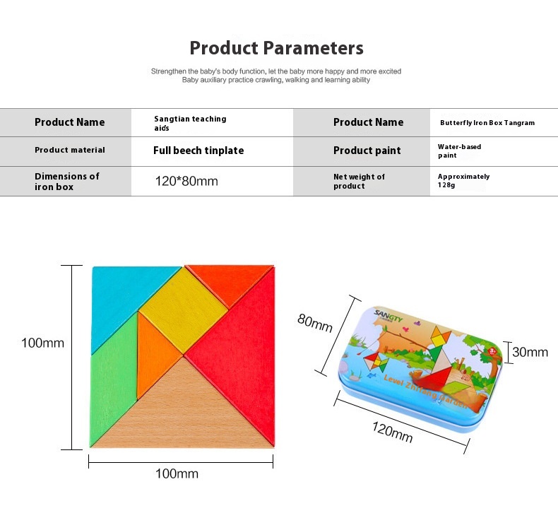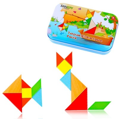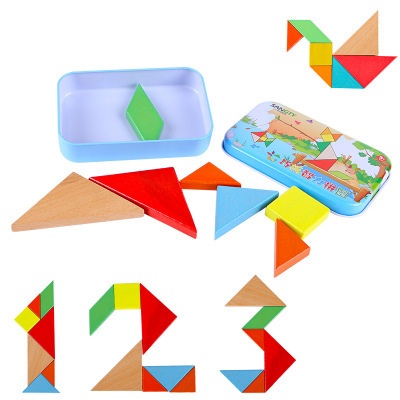 Wooden Beech Iron Box Tangram Intelligence Puzzle Toy Children's Educational Early Education Kindergarten Gift