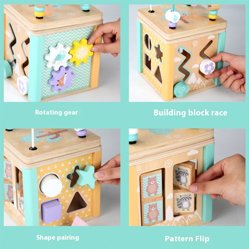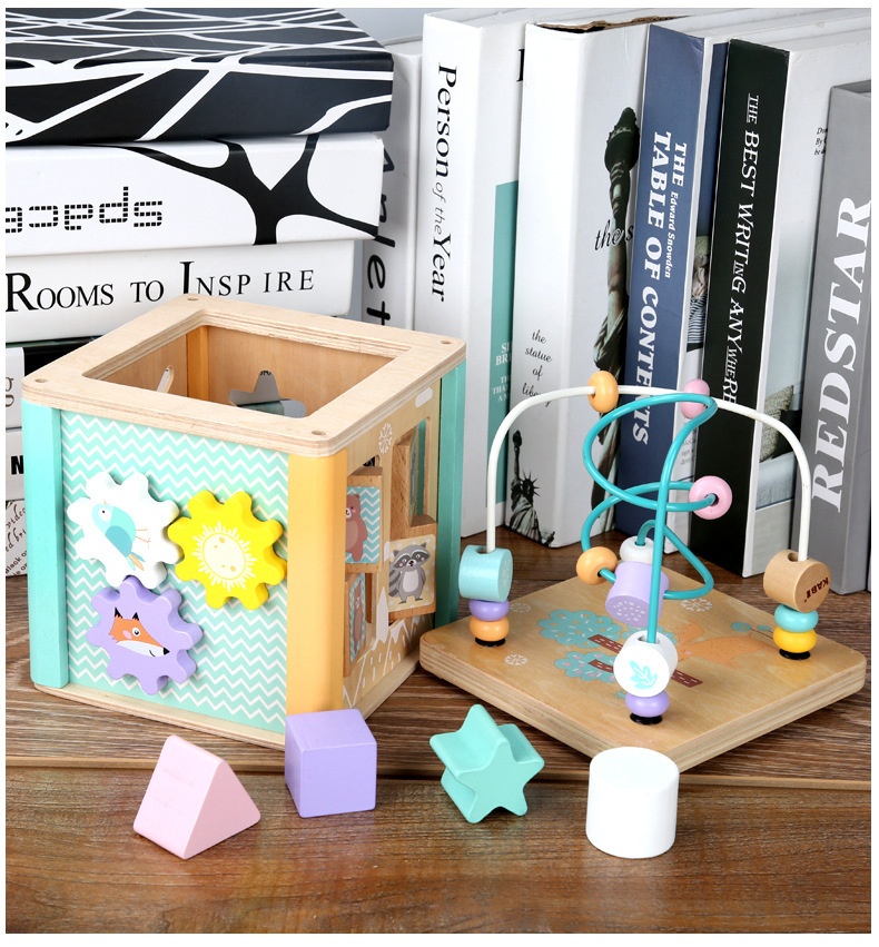 Children's Ocean Game Box Beaded Forest Treasure Box Toy Wooden Macaron Shape Matching Beaded Toys