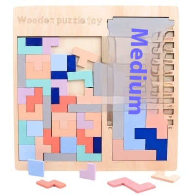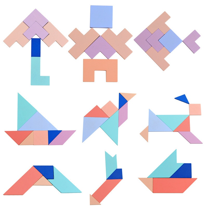 Children's4-in-1 Educational Tangram Puzzle Tetris T-shaped Building Blocks Montessori Teaching Aids Wooden Puzzle