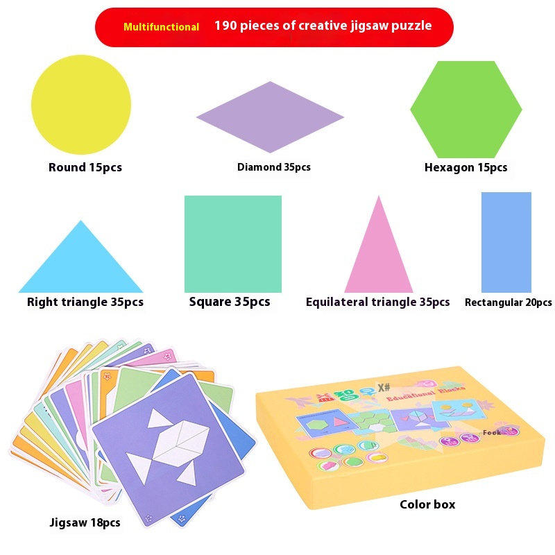 190 Pieces Of Early Childhood Educational DTYWooden Macaron Tangram Development Intelligence Jigsaw Puzzle Toy