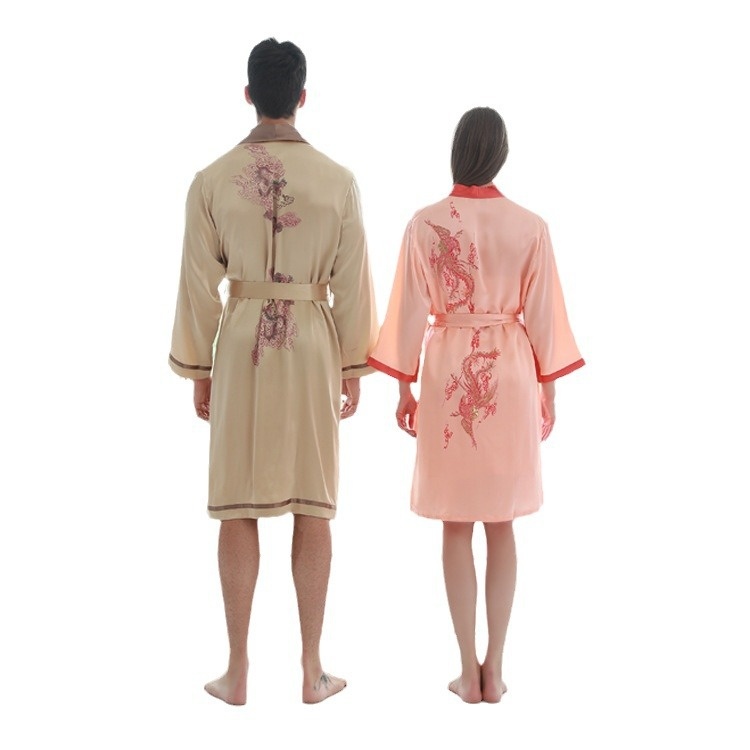 Couple Pajamas Robes High-end Silk Women's Spring And Summer Suspenders Two-piece Set Sexy Autumn And Winter Long-sleeved Men's Chinese Style