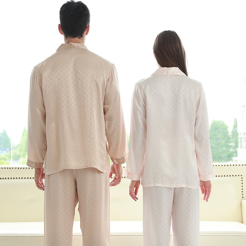 Heavy Silk Silk Solid Color Men's And Women's Homestays Long Sleeve Trousers Loose Couple Pajamas Set