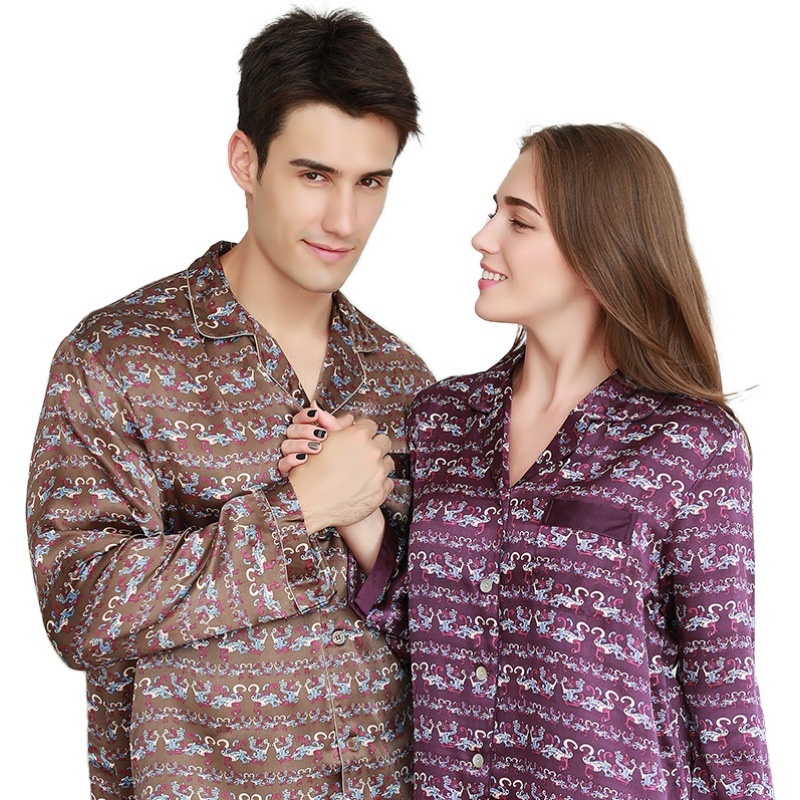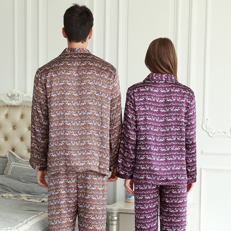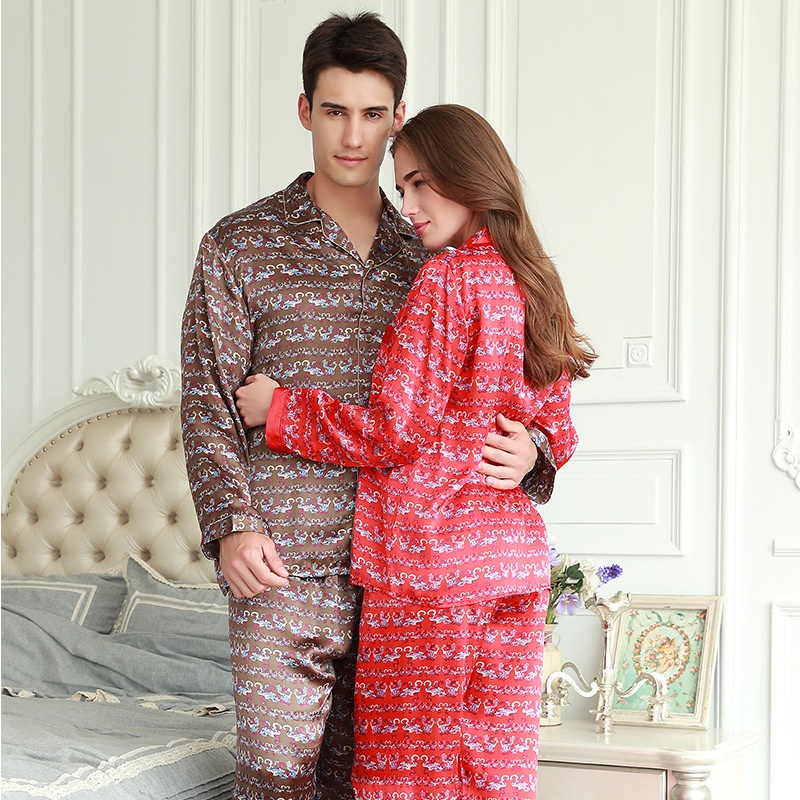 Spring And Autumn Silk Pajamas Couples Long Sleeve Trousers Thin Home Wear