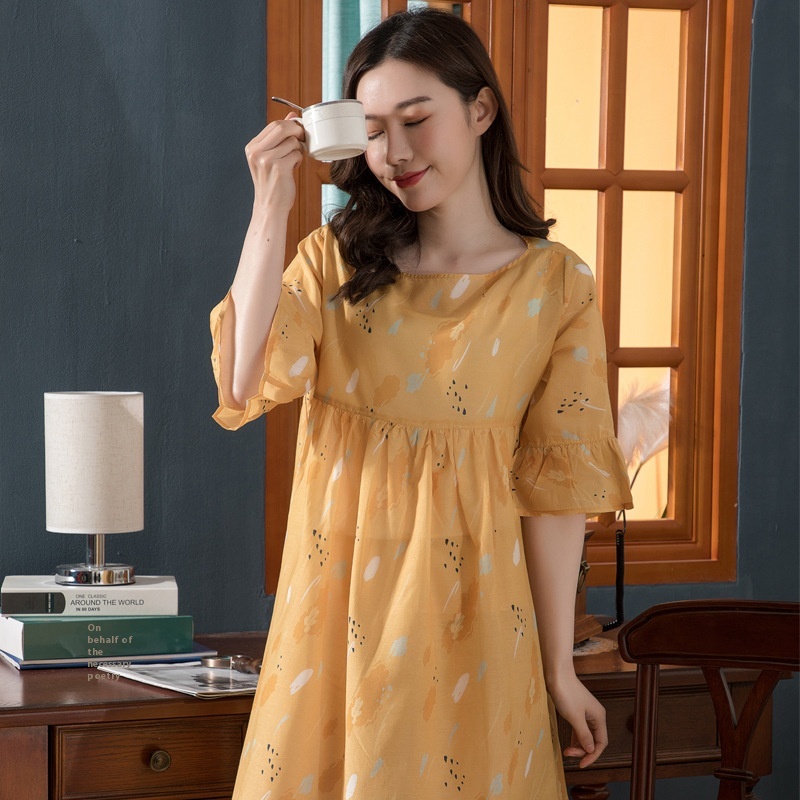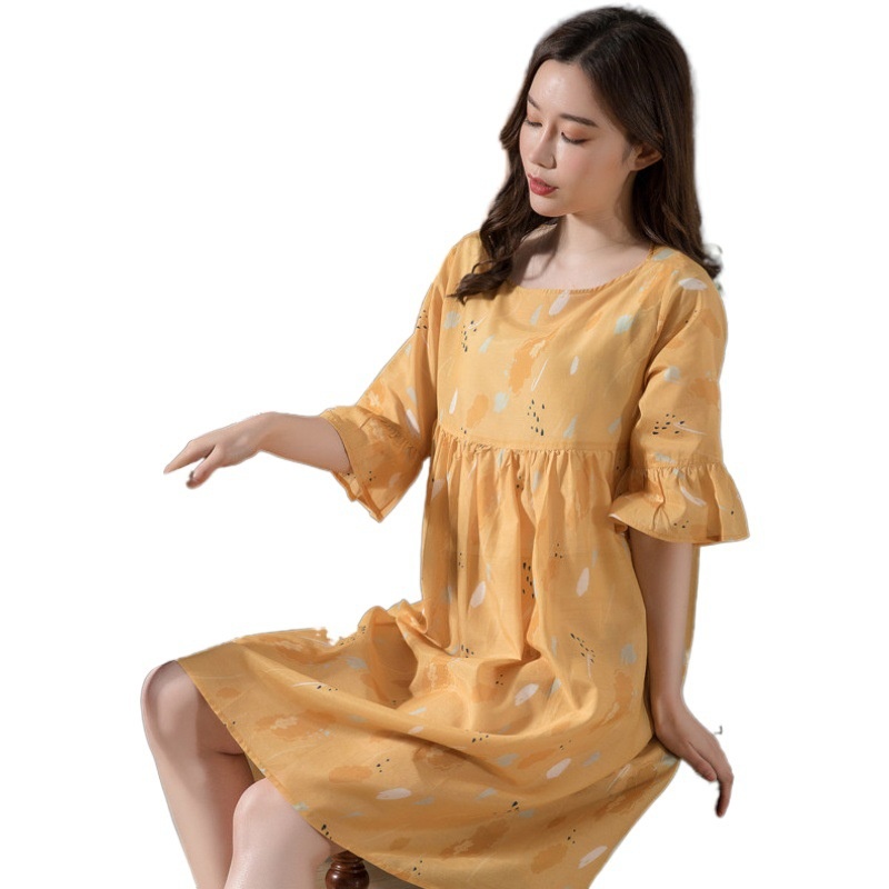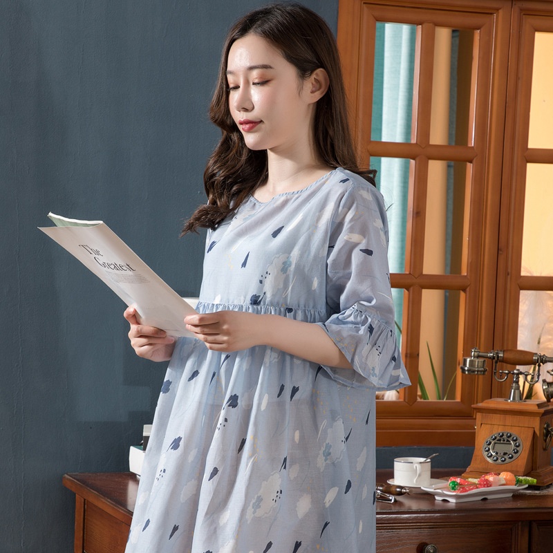 Spring And Autumn Combed Cotton Home Clothes Women's Thin Nightdress Round Neck Cute Conniya Order Tail Goods One Piece Dropshipping