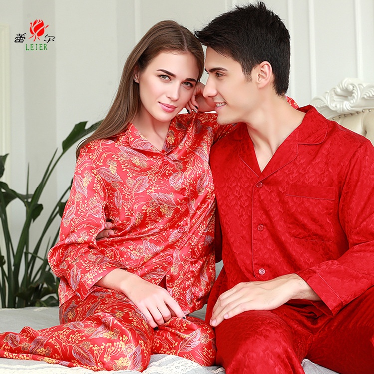Silk Pajamas Mulberry Silk Couples Long-sleeved Home Wear
