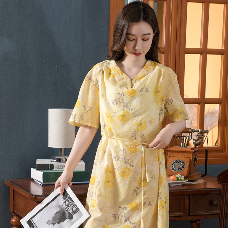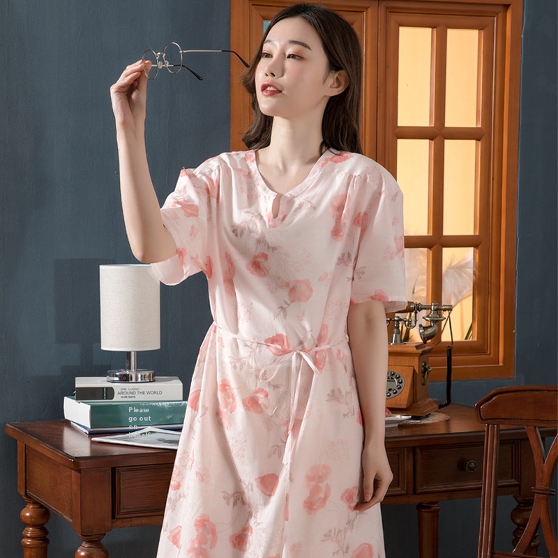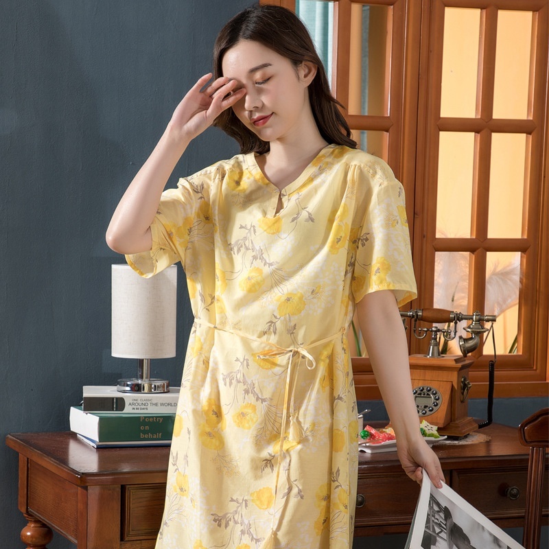 Spring Cute Girls Silk Cotton Nightdress Loose Comfortable Simple Natural Home Clothes One Piece Dropshipping
