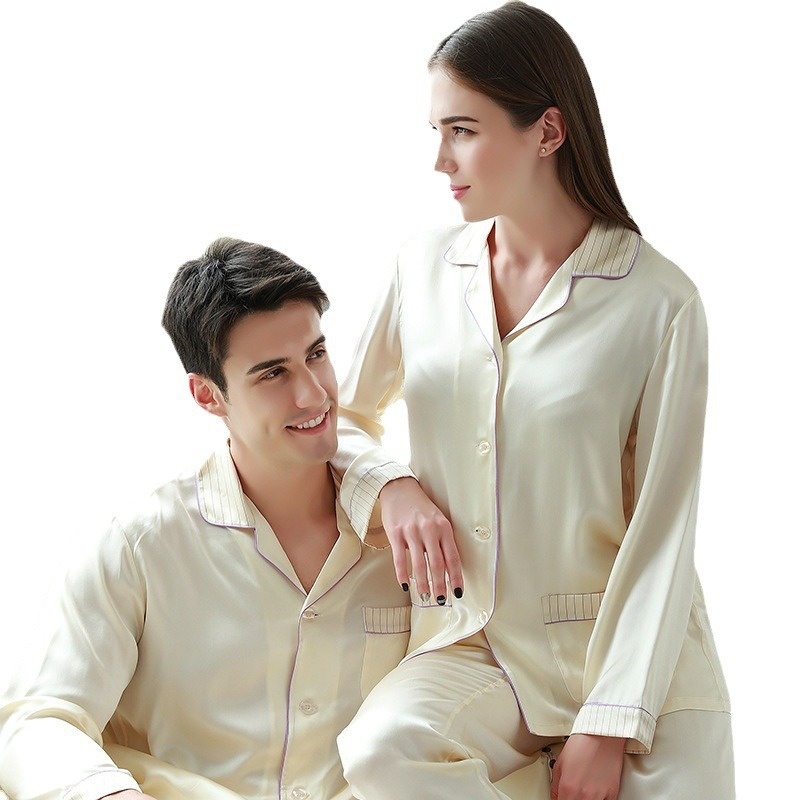 Spring And Summer Lovers Long-sleeved Cardigan Lapel Pajamas Two-piece Set Loose Comfortable Silk Home Wear
