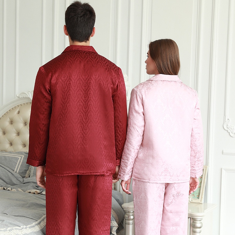 Autumn And Winter Thickened Couple Pajamas Silk Pajamas European And American High-end Dark Flower Winter Style Men's Autumn Casual Home Clothes Suit