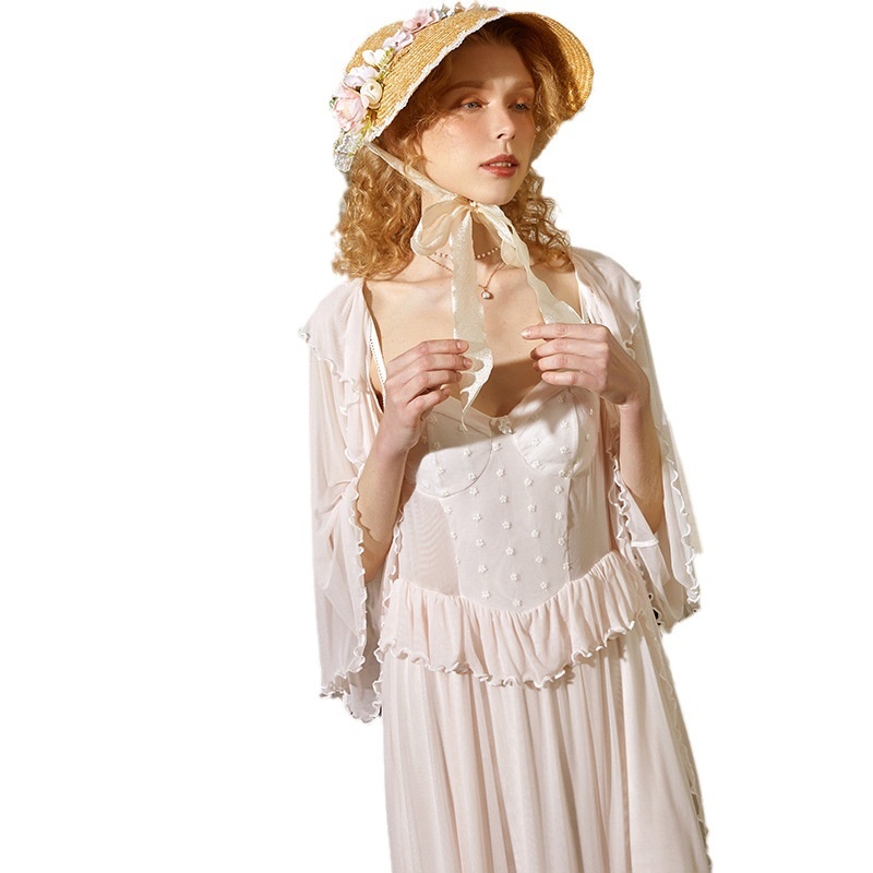 Retro Palace Slim Fit With Chest Pad Sling Mesh Nightdress With Outer Cloak Two-piece Pajamas Fairy Home Clothes Autumn