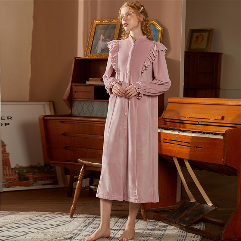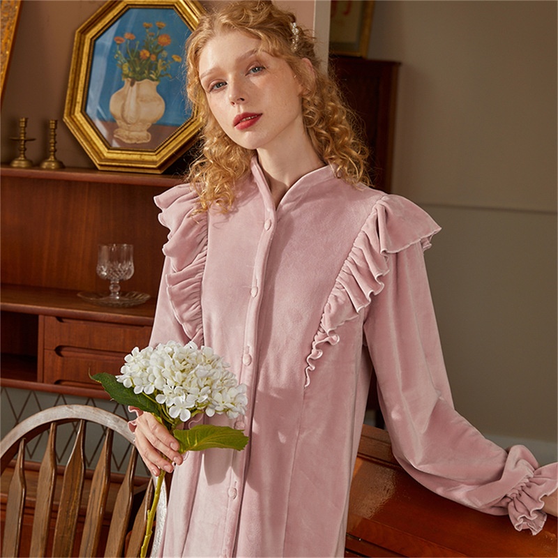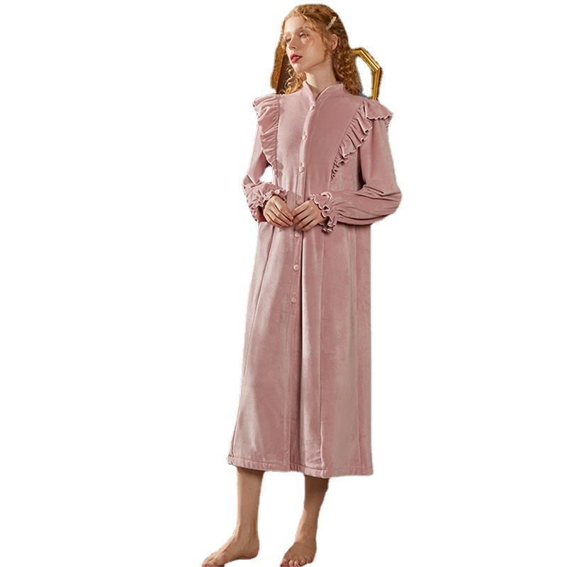 CMOriginal Fine Double-sided Mink Velvet Half-high Collar Nightgown Three-dimensional Small Flying Sleeve Cardigan Pajamas Home Clothes Long Warm