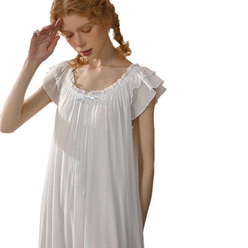 CMOriginal Three-dimensional Small Flying Sleeves Double-layer Mesh Neckline Wearing Ribbon Lace Retro Loose A-line Version Of The Pajamas Dress