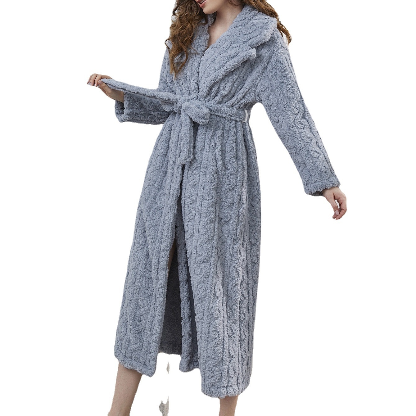 Winter Jacquard Double-faced Velvet Thickened Nightgown With Large Lapel And Belt For Wearing Outside Home Clothes With Pockets