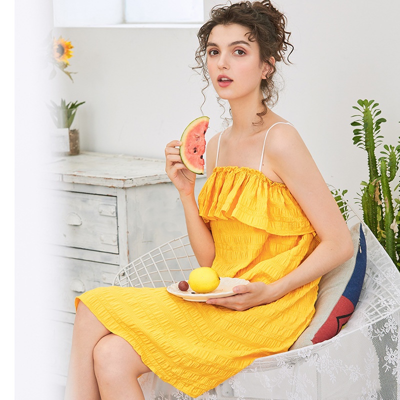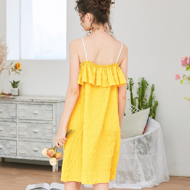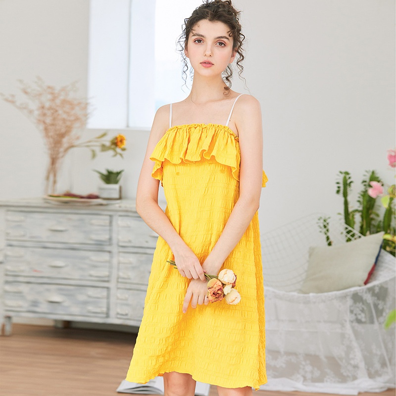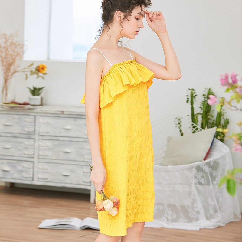 Summer Pure Color Girl Sling Sweet Series Medium And Long Nightgown Can Be Worn Outside Pajamas Skirt Fabric Comfortable