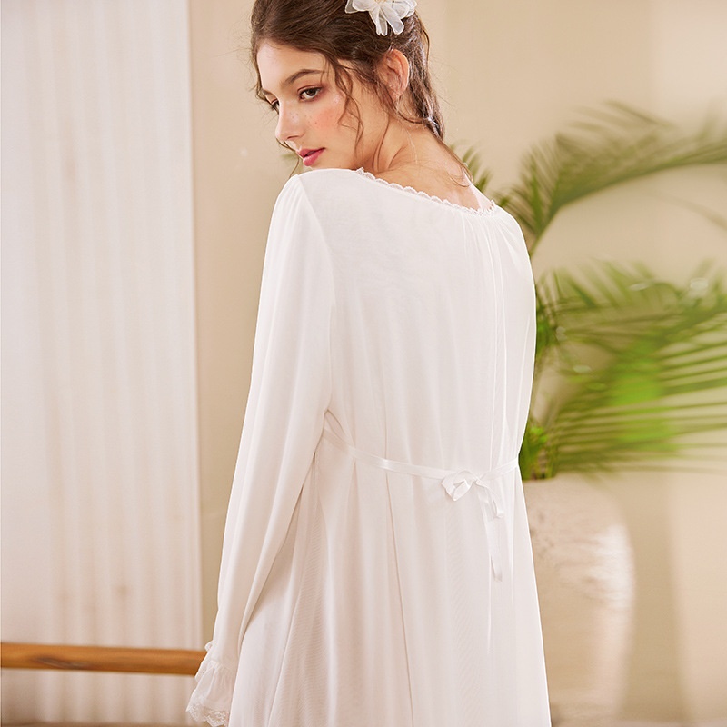 V-neck Double-layer Mesh Lace Splicing Palace Nightdress Elegant Temperament Fairy Long-sleeved Long Skirt Dery