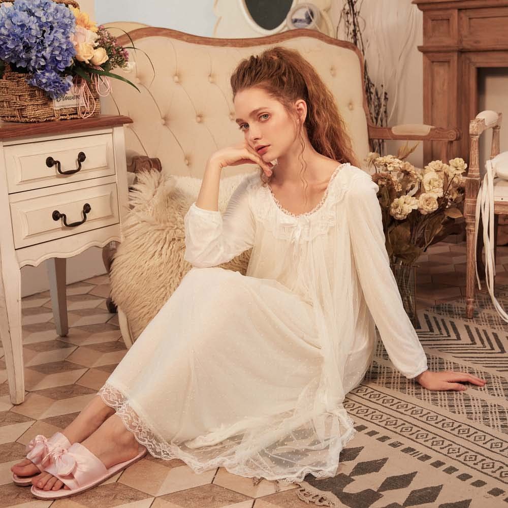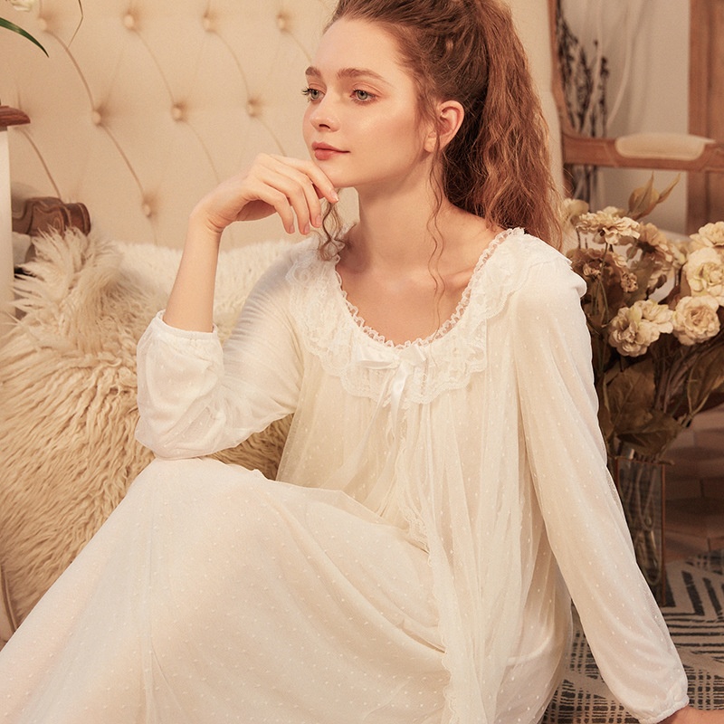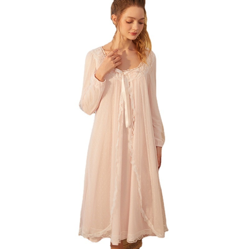 Spring And Autumn Retro Large Square Collar Sweet Pajamas Long Sleeves Long Loose Solid Color Home Clothes Women Cute Elegant Long Skirt