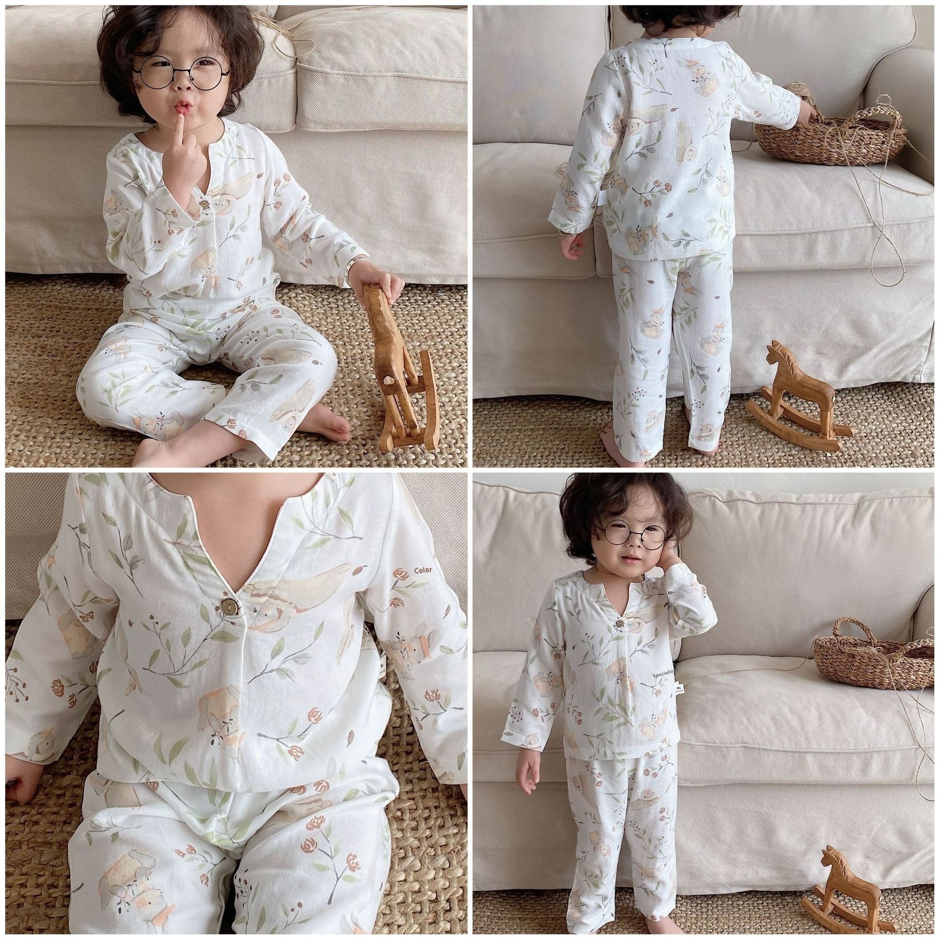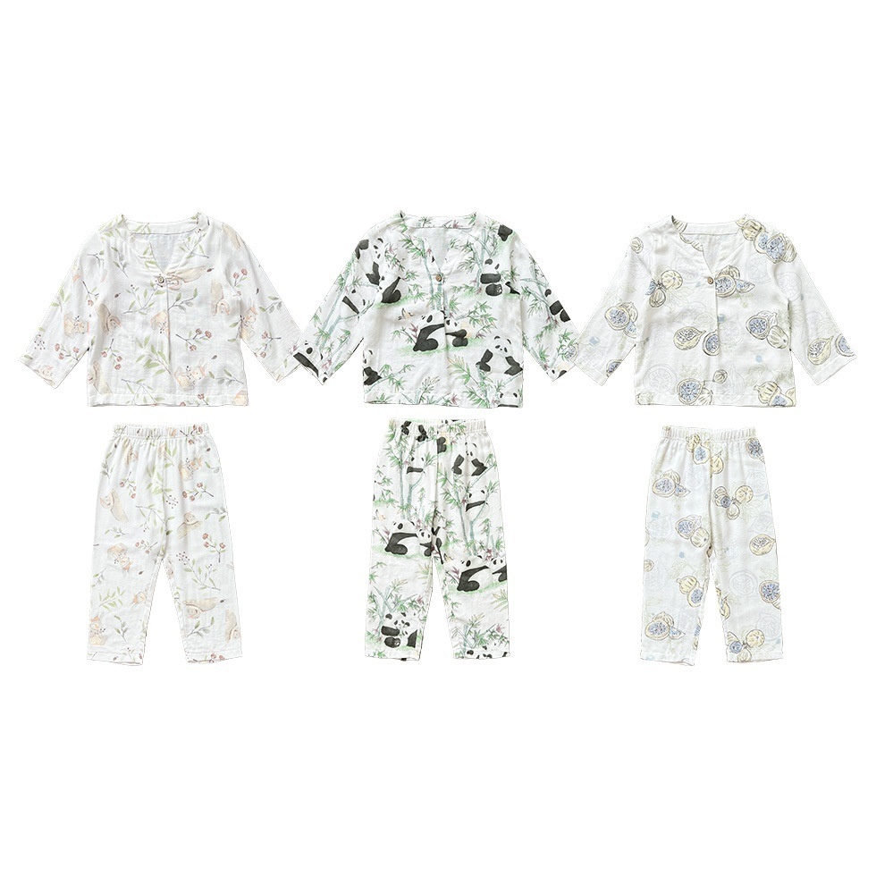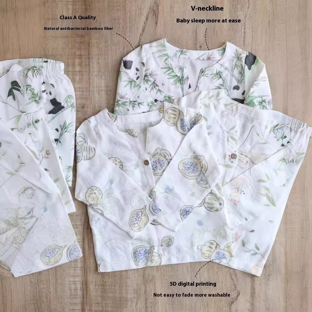 Children's A-type Bamboo Cotton Home Clothes Suit Summer Boys And Girls Baby Long-sleeved Air-conditioning Clothes Pajamas