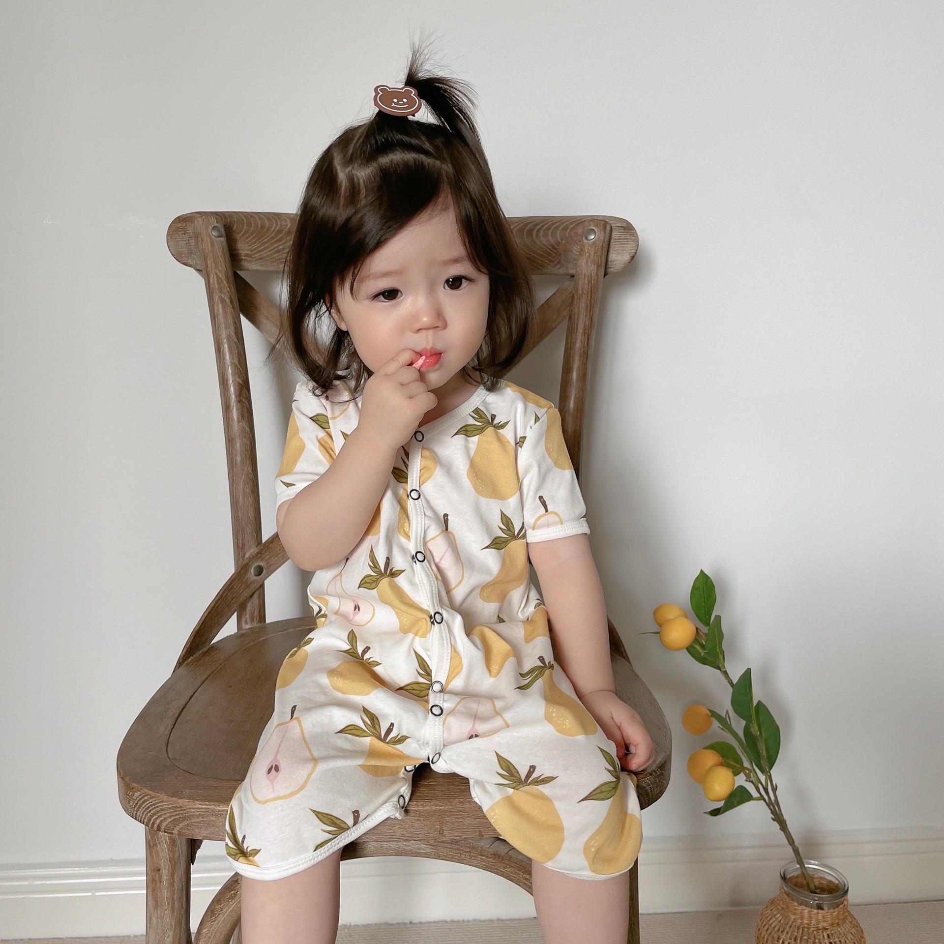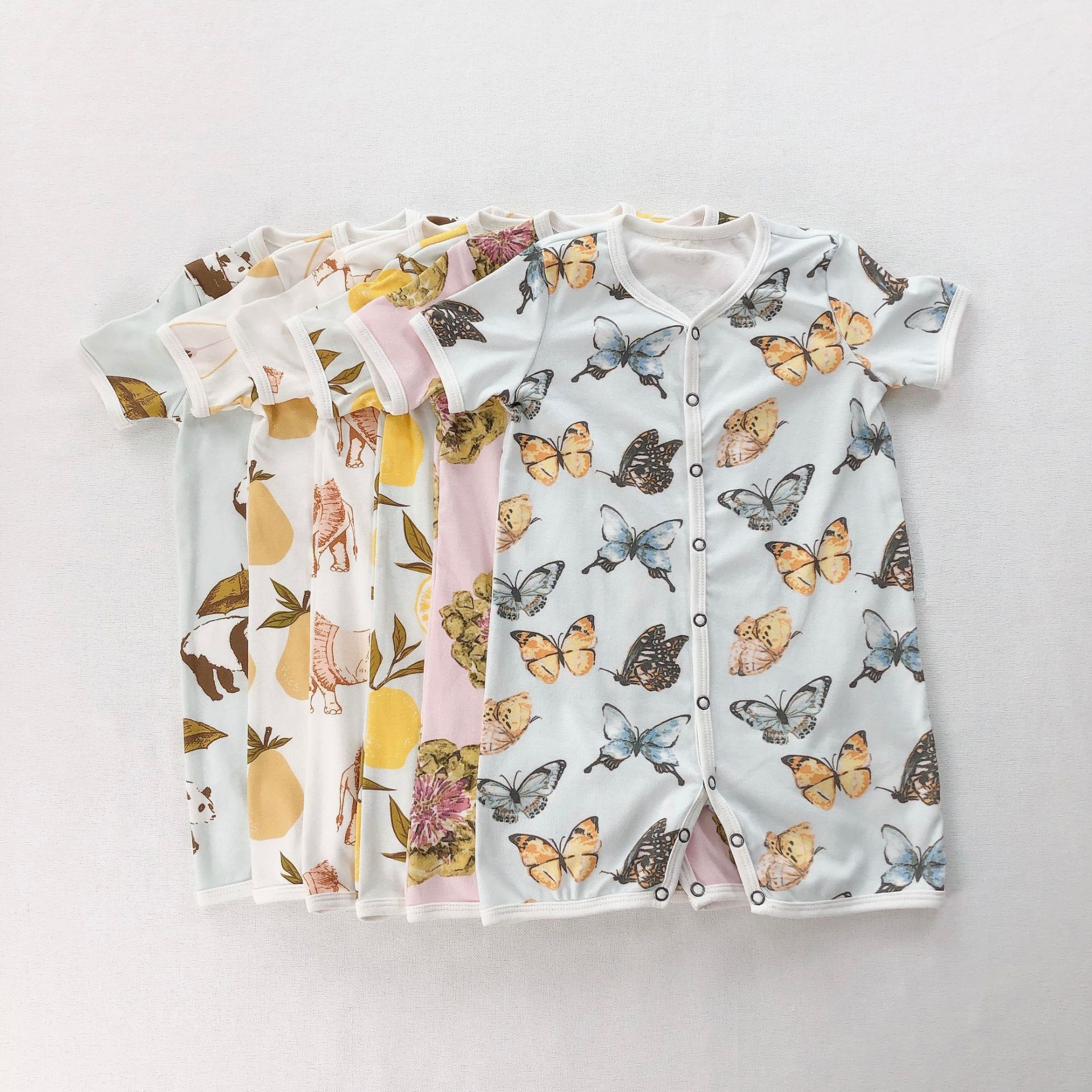 Summer Baby Modal Open Crotch Jumpsuitborn Baby Crawling Clothes Short-sleeved Romper