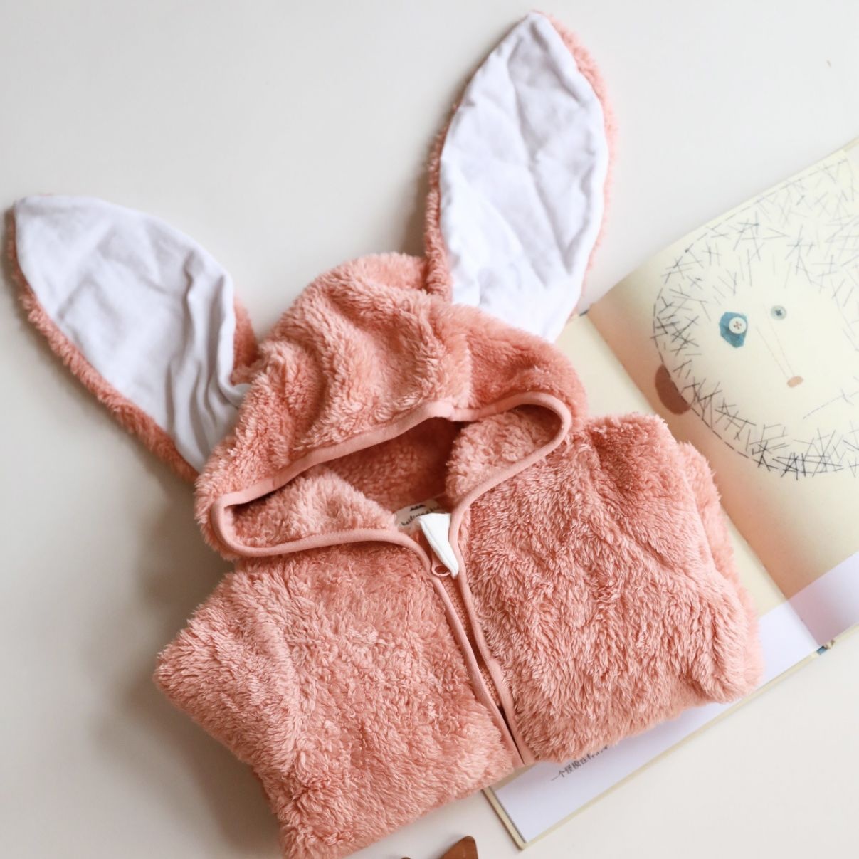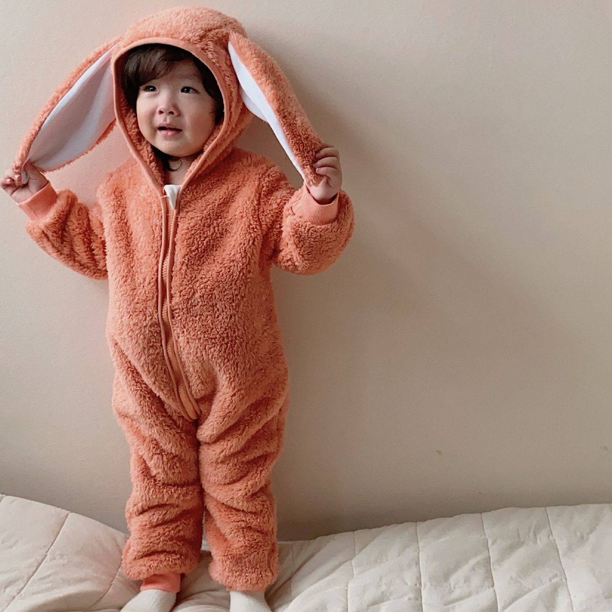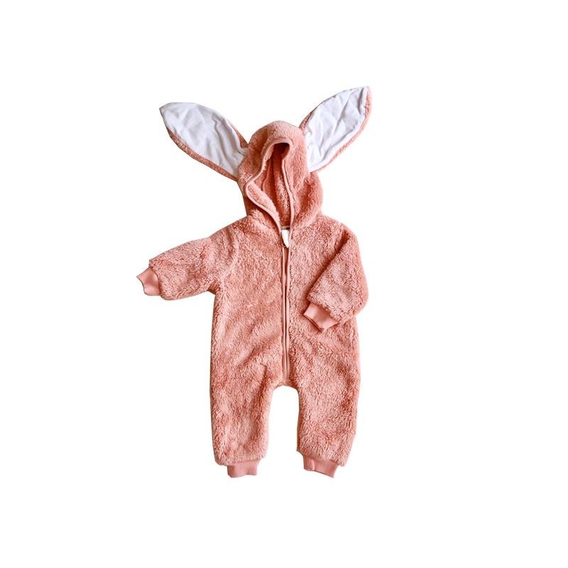 Baby Pink Rabbit Coral Fleece Jumpsuit Autumn And Winter Style One-year-old Baby Crawling Clothes Winter Cute Hooded Outdoor Clothes