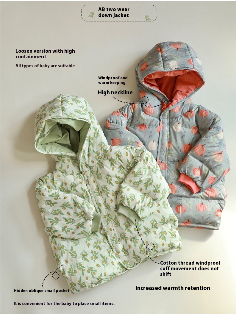 Winter Children's Style Two-sided White Duck Down Jacket Baby Thick Warm Girls Hooded Jacket