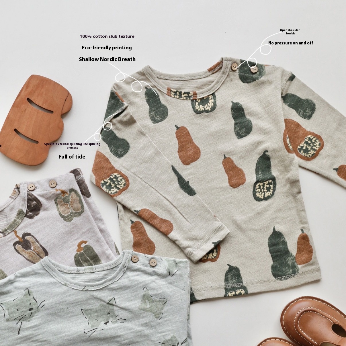 Children's A-type Pure Cotton Bottoming Shirt Boys And Girls Nordic Style Tops Spring And Autumn Baby Long-sleeved Brushed T-shirt