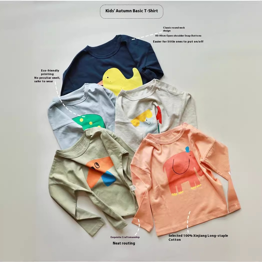 Children's Cartoon Cotton Bottoming Shirt Baby Long-sleeved T-shirt Spring Boys And Girls Round Neck Inner Top