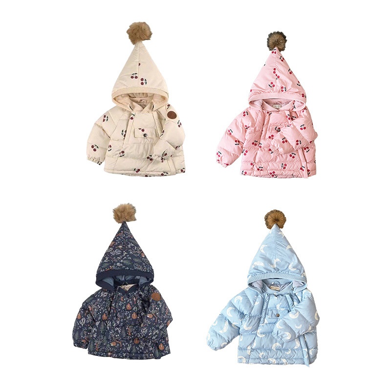 Children's White Duck Down Jacket,Little Kid's Kuling Elf Hat Cotton Coat,Boys'And Girls'Baby Winter Cotton Coat