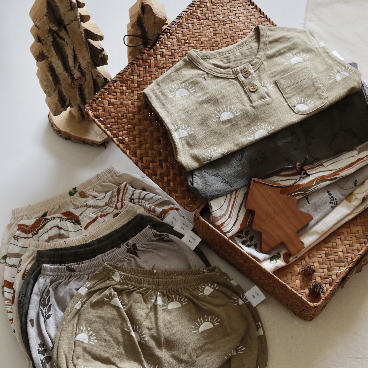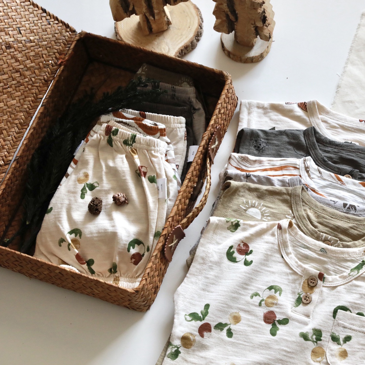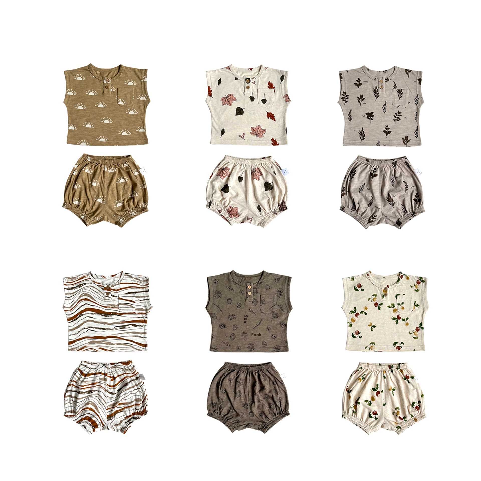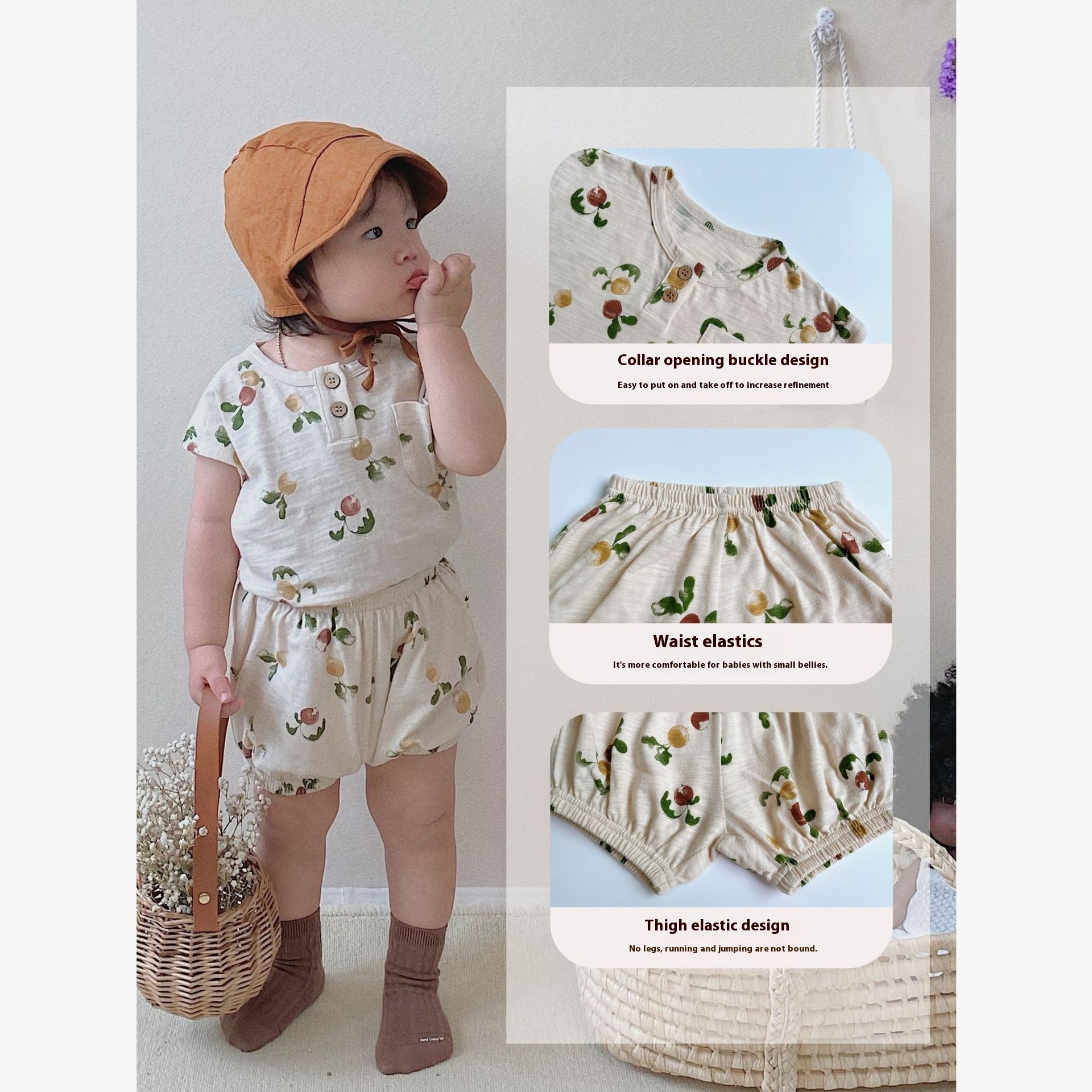 Children's Summer Pure Cotton A-type Bamboo Cotton Short-sleeved Suit Pants Boys And Girls Baby Two-piece Suit