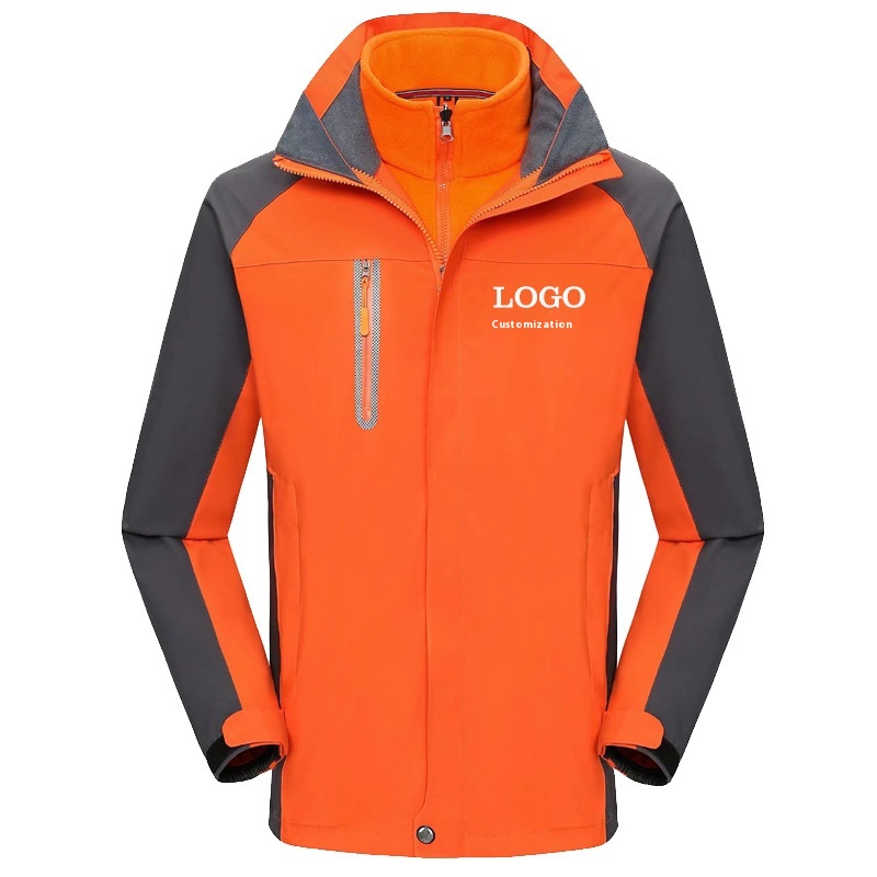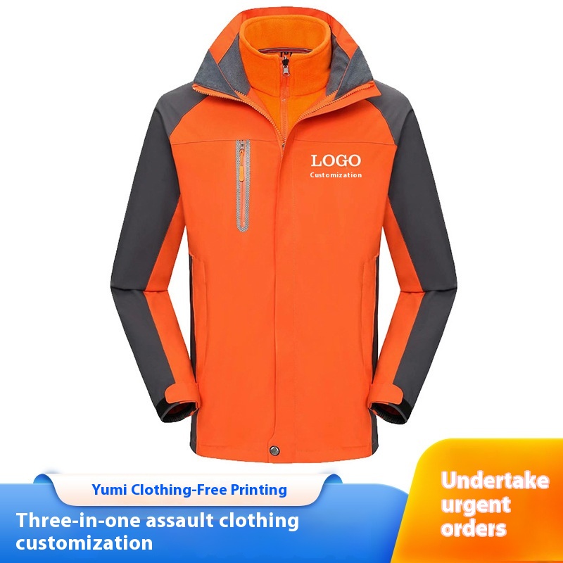 Winter Three-in-one Jacket Work Clothes Thickened Velvet Waterproof Detachable Two-piece Outer Jacket With Printing