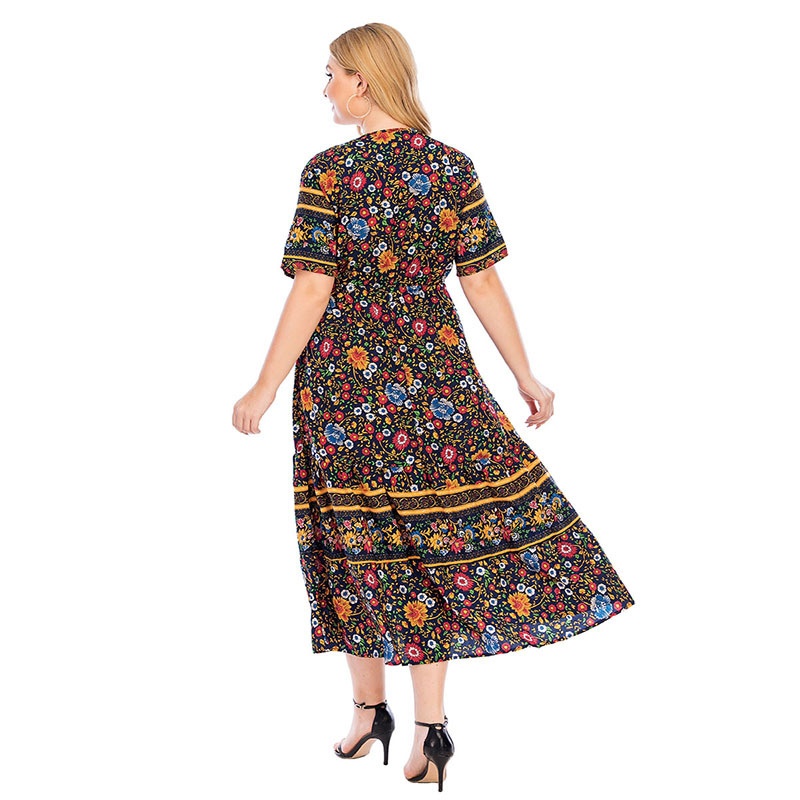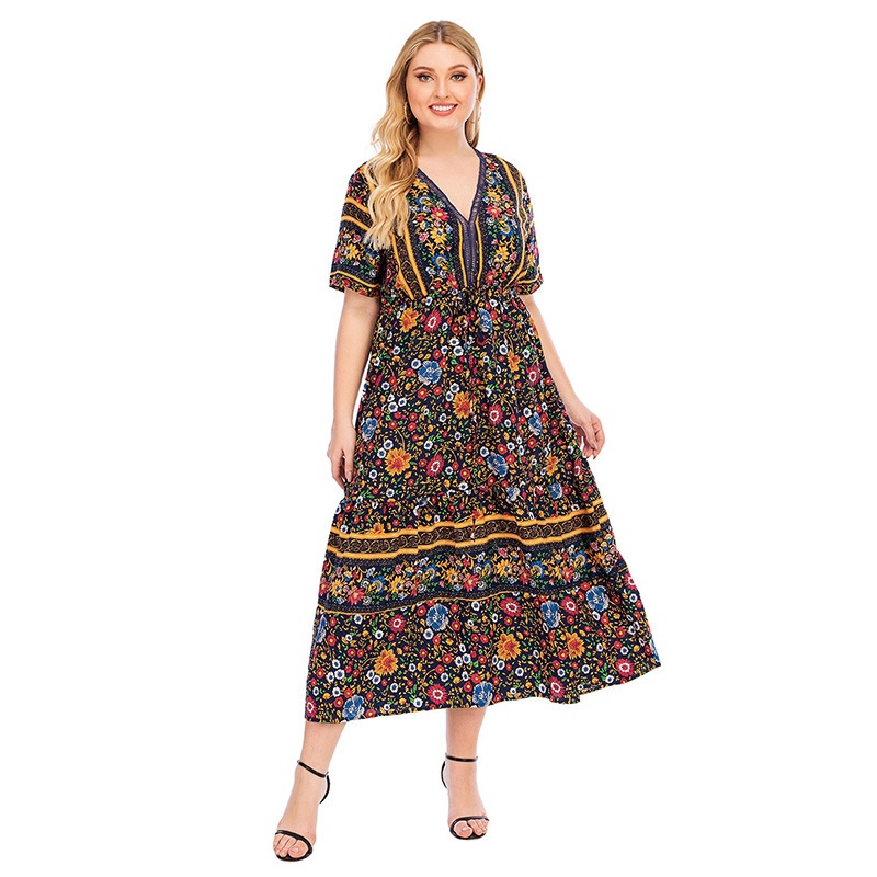 USMiddle East Retro Women's Large Size Floral Dress200 Catties Can Wear