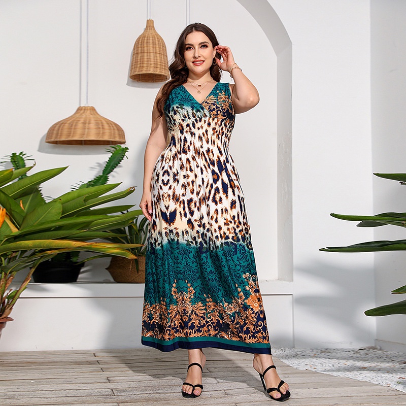 Foreign Trade Russian Big Size Dress Bohemian Milk Silk Printed Long Dress200 Catties Fat Mm Can Wear