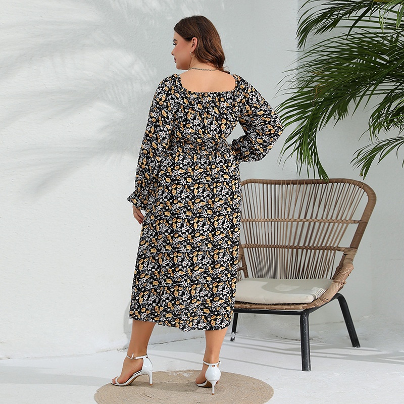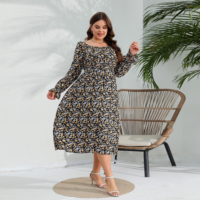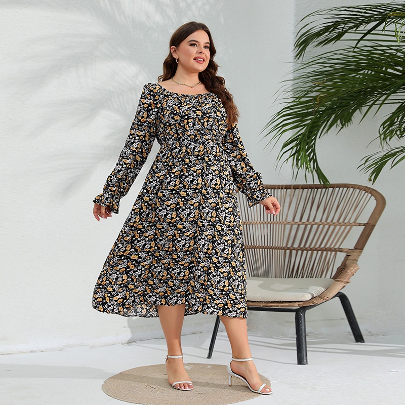Spring Large Size Lotus Sleeve Cotton Silk Dress Plus Size Long Dress200 Jin Can Wear