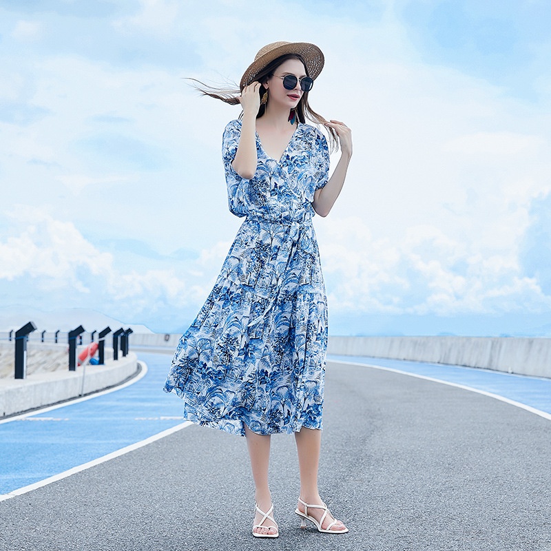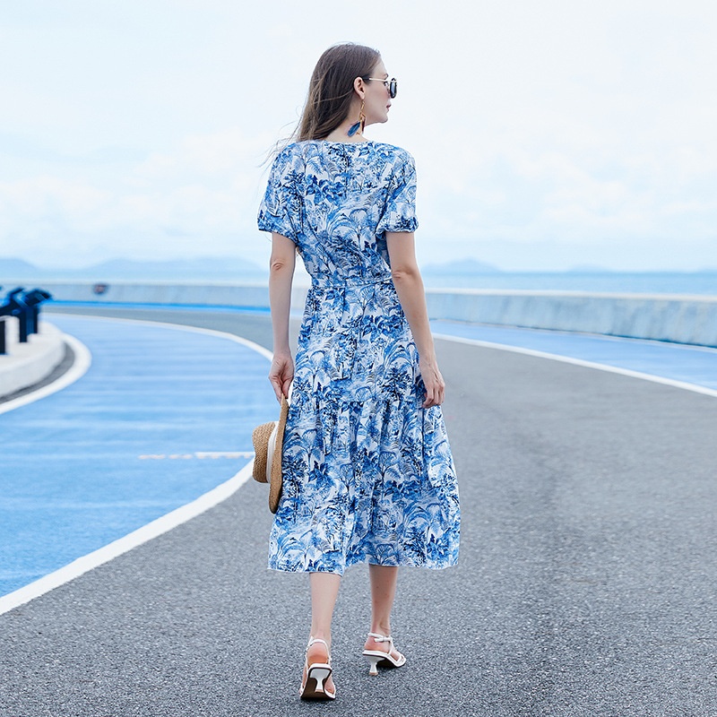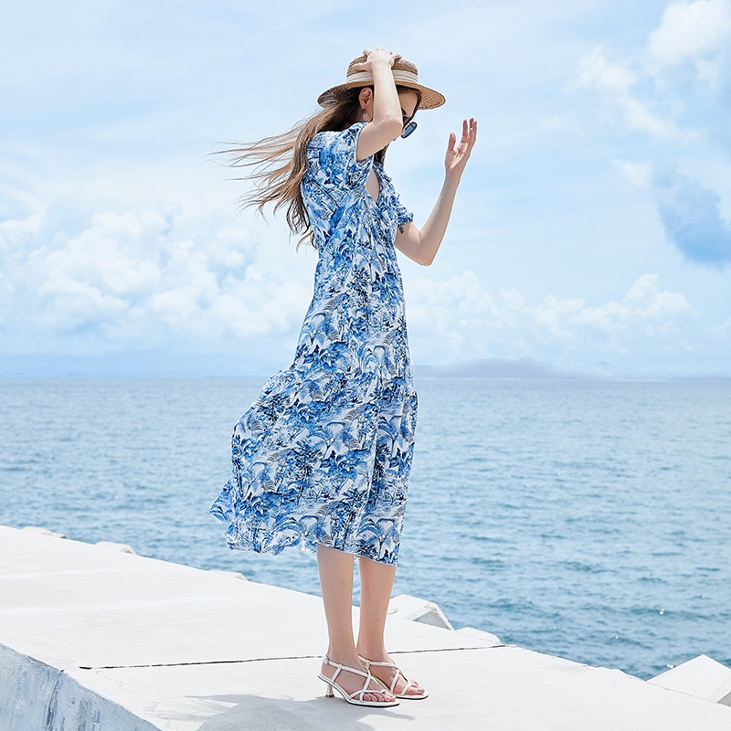 Australia Hand-painted Dress Large Size Seaside Floral Holiday Beach Dress Ladies Elegant Loose