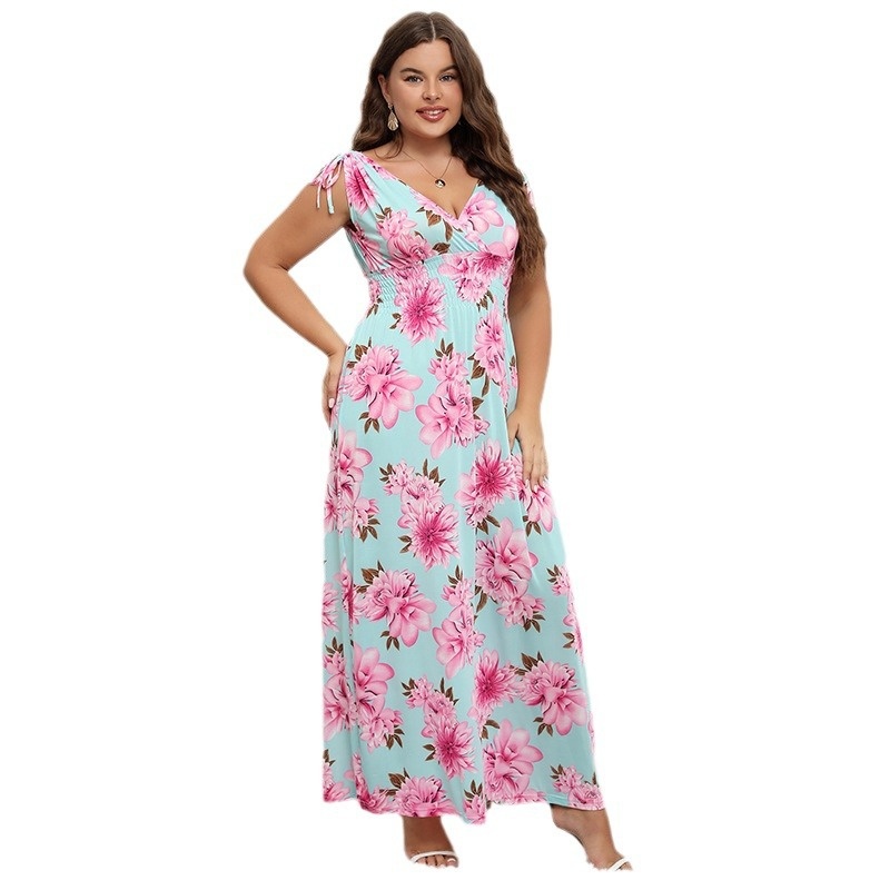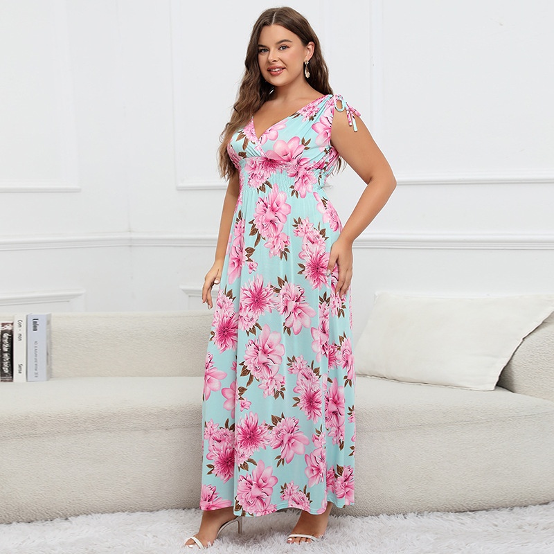Foreign Trade European And American Plus Size Women's Dress Suspenders Printed Fat Mm Plus Fat Summer Ice Silk Long Skirt