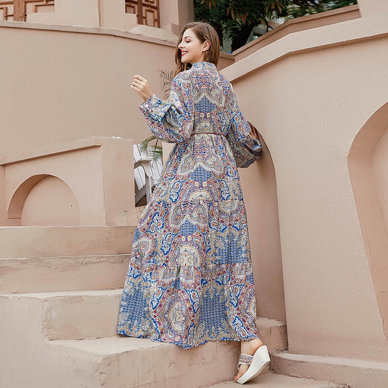 French Retro Floral V-neck Plus Size Dress For Women In Spring And Autumn,Gentle And Elegant,Puff Sleeve Long Dress
