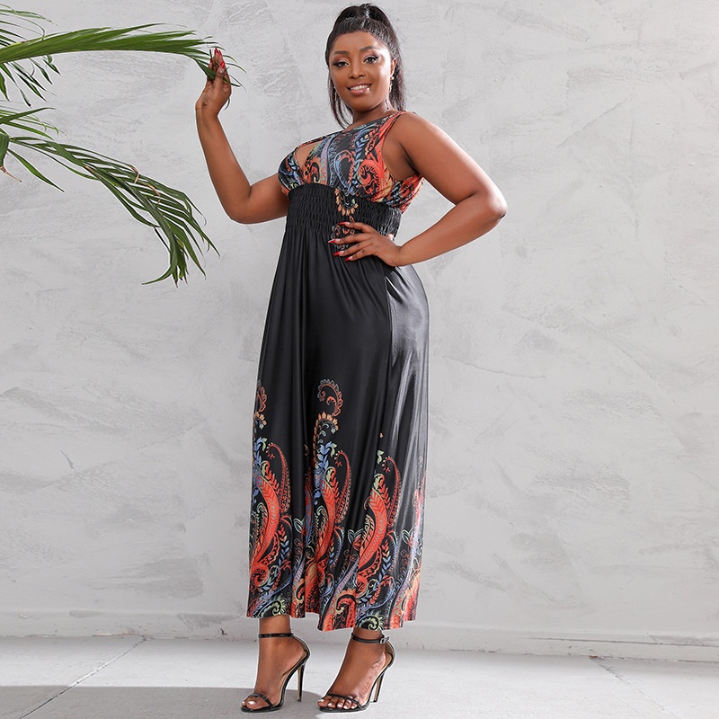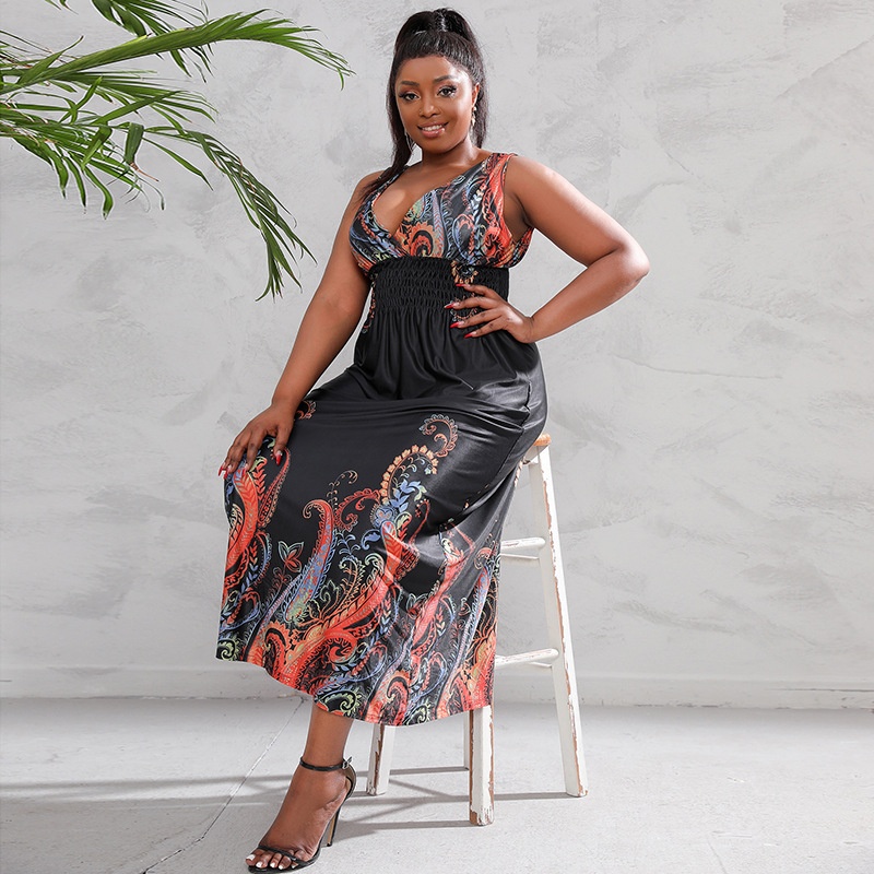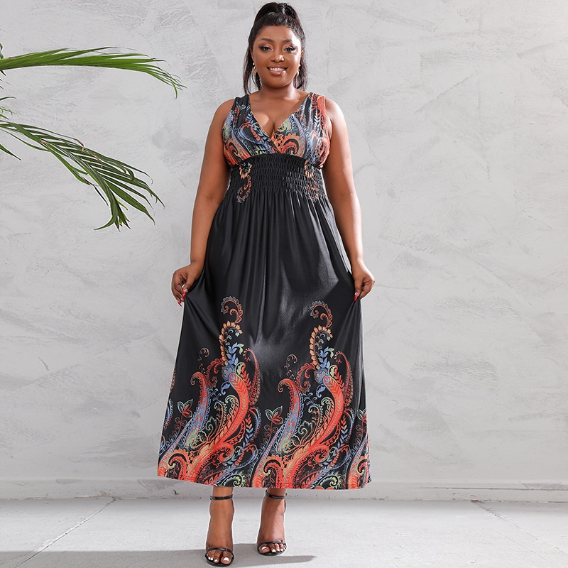 USLarge Size Printed Elastic Waist Dress Long Ice Silk Plus Size Plus Size Long Skirt