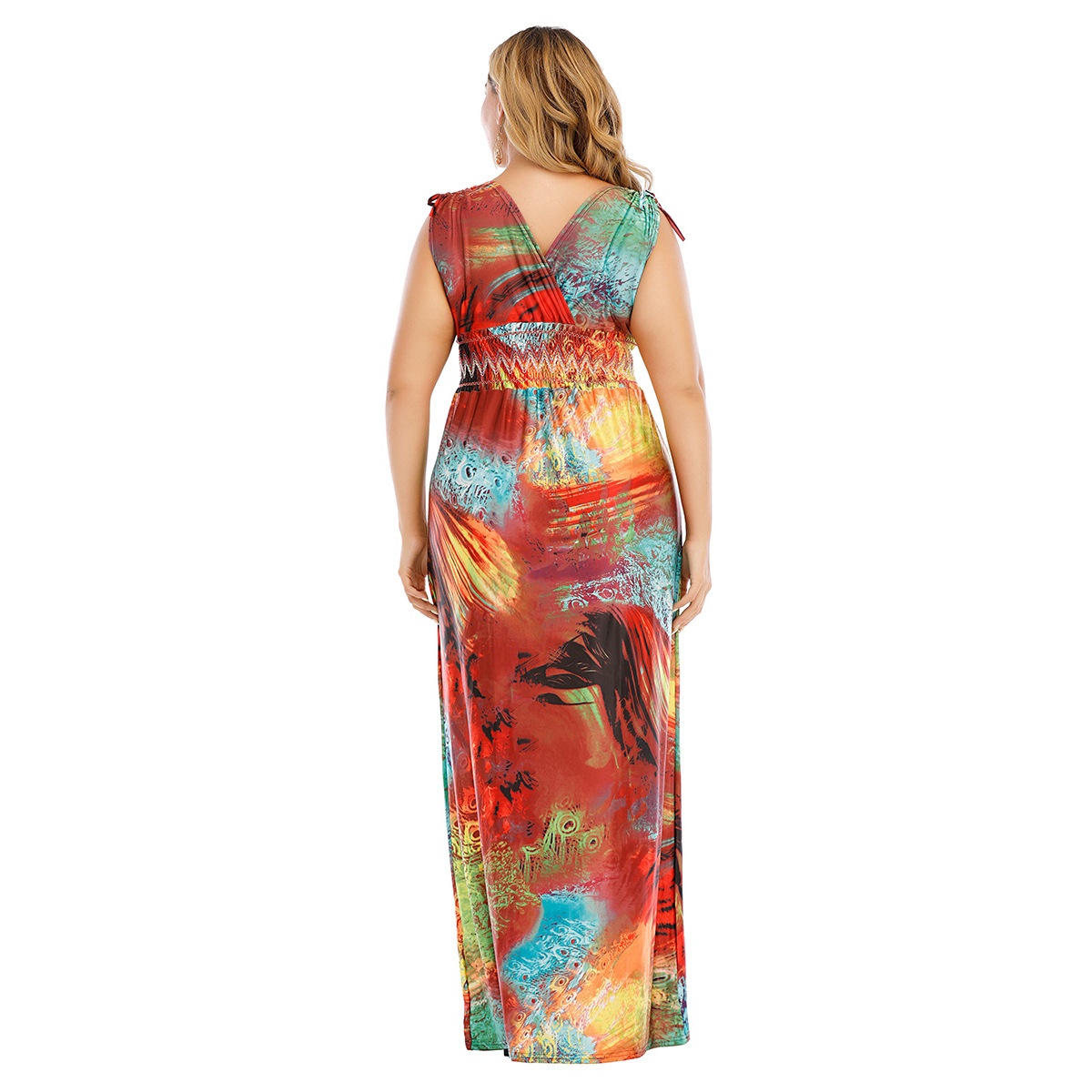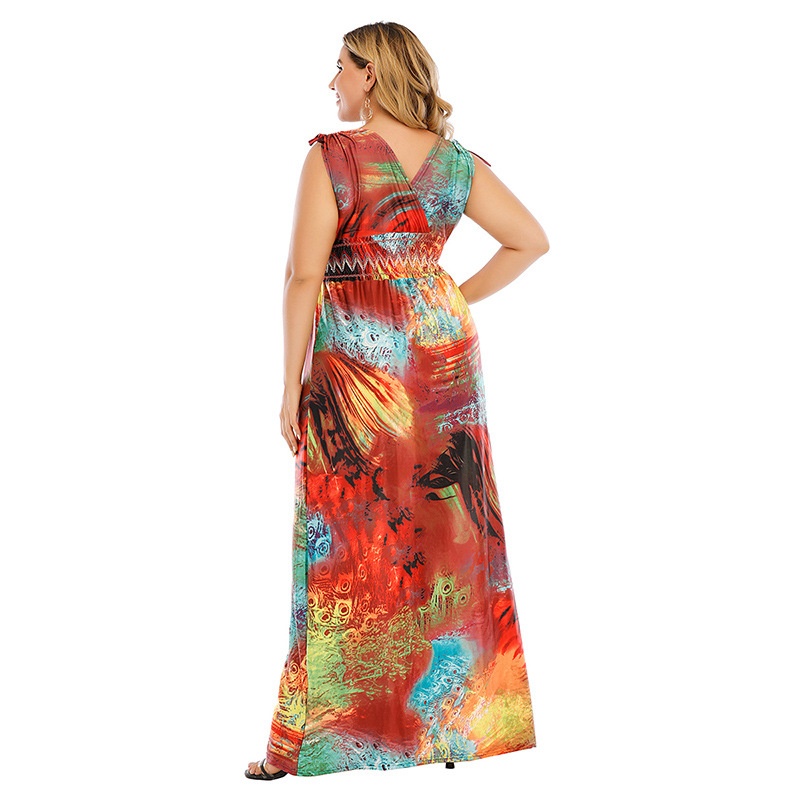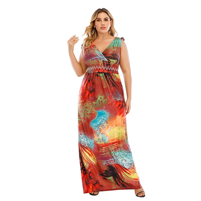American Large Size Dress V-neck Elastic Waist High Elastic Knitted Ice Silk Bobby Long Skirt Graffiti200 Pounds
