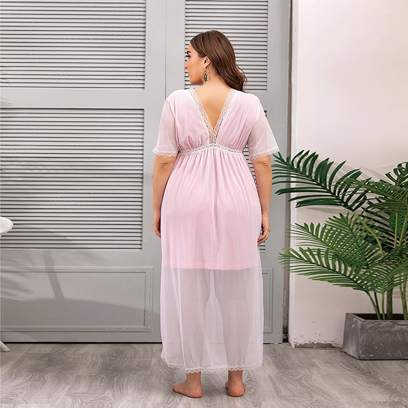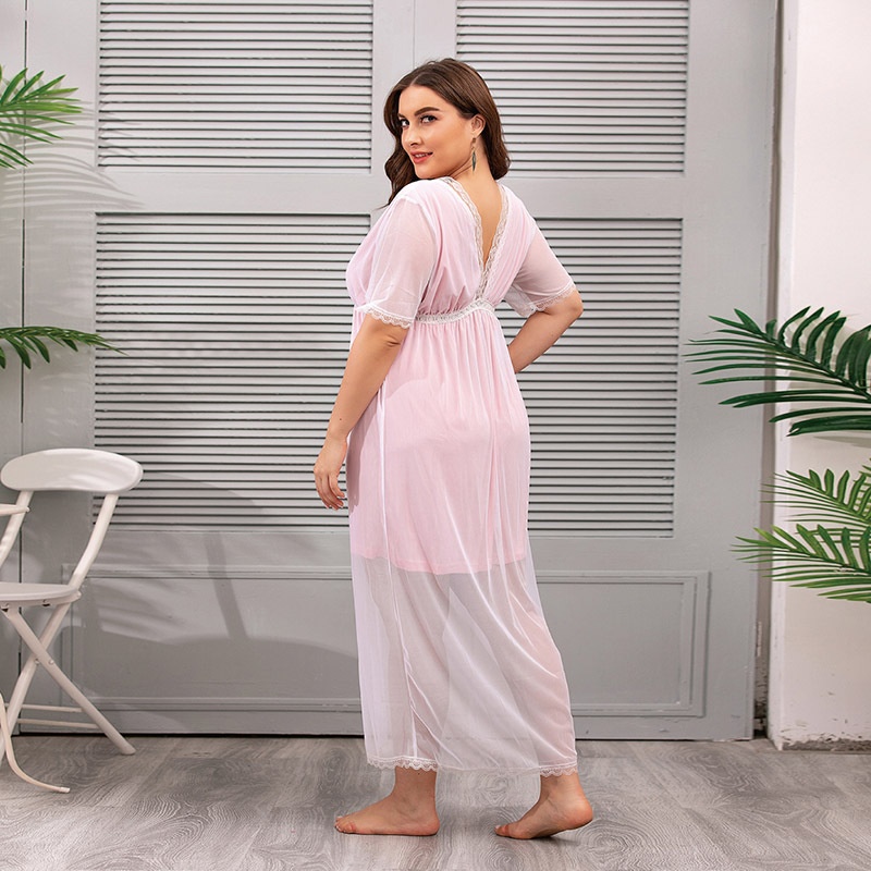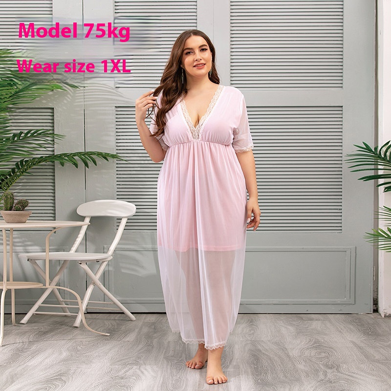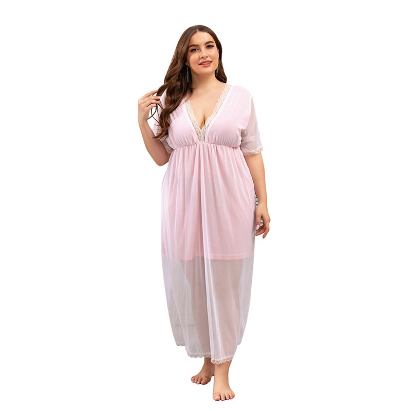 USAPure Desire Style Mesh Lace Home Clothes Large Size Nightdress Summer Fat Mm French Dress