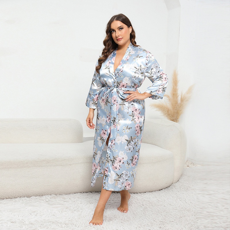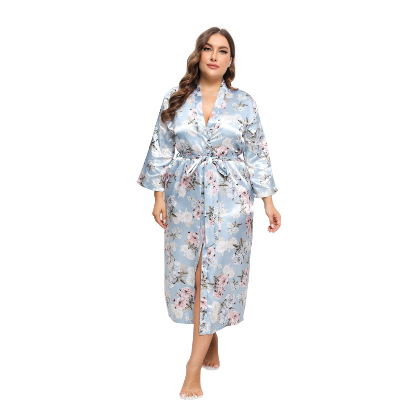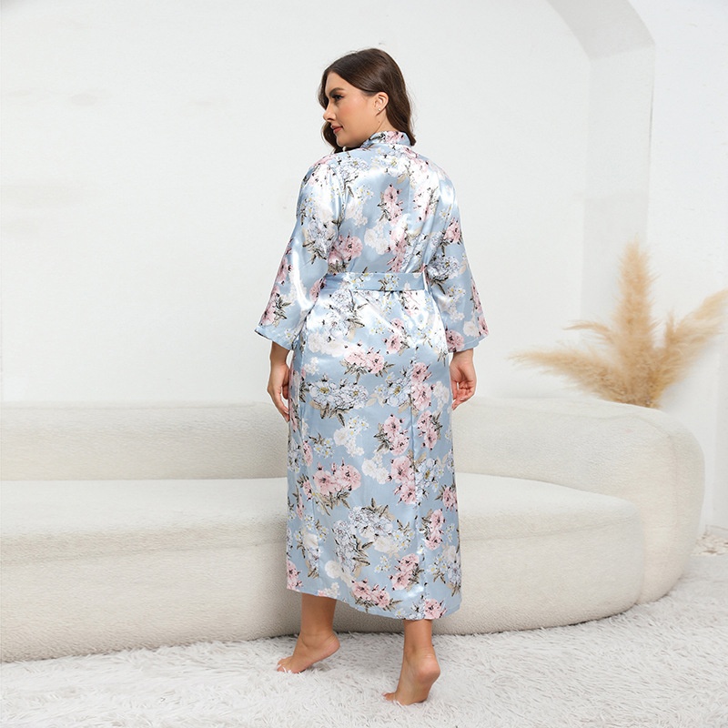 Autumn Imitation Silk Satin Large Size Nightgown Bathrobe Home Clothes Long Sleeve XXXXL