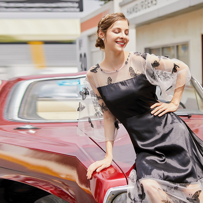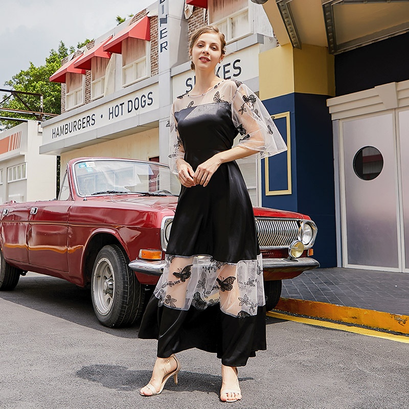 French Court Style Plus Size Dress Fat Girl Dress Organza Satin Plus Fat Plus Size Mesh Long Skirt