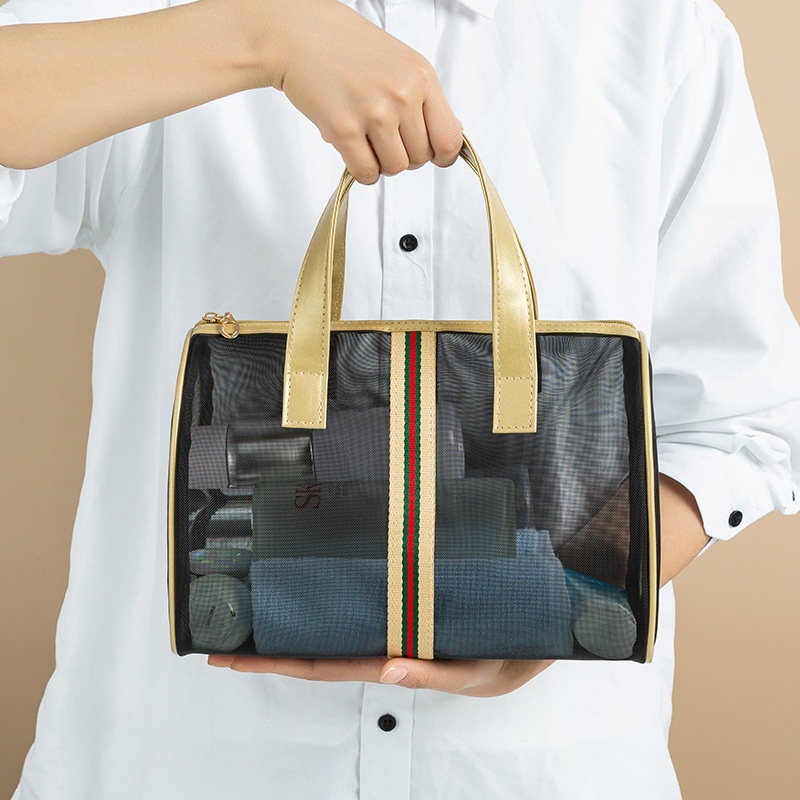 Mesh Hand-held Storage Bag Breathable Swimming Bathing Bag Large Capacity Travel Beach Bag Female Portable Makeup And Toiletries Bag