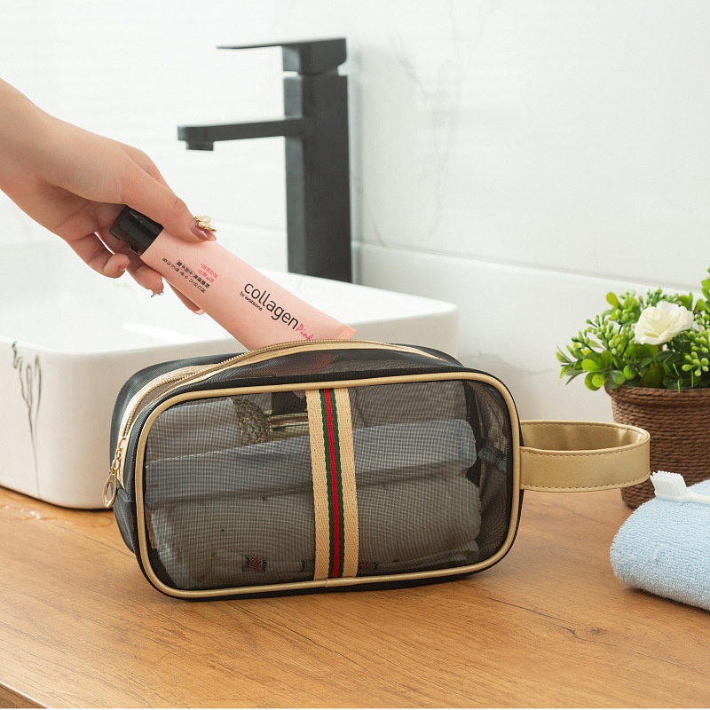 Mesh Toiletry Bag Travel Portable Breathable Storage Bag Large Capacity Transparent Bathing And Swimming Bag