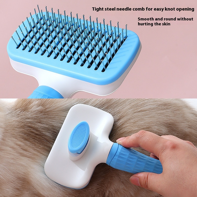 Havo Pet Self-Cleaning Comb Cat And Dog Universal Massage Comb Round Soft Handle Self-Cleaning Steel Needle Brush Hair Removal Comb
