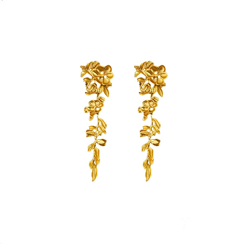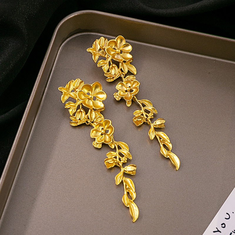 Silver Needle European And American Retro Three-dimensional Flower Tassel Earrings Medieval High-end Exaggerated Leaf Earrings Personality Earrings