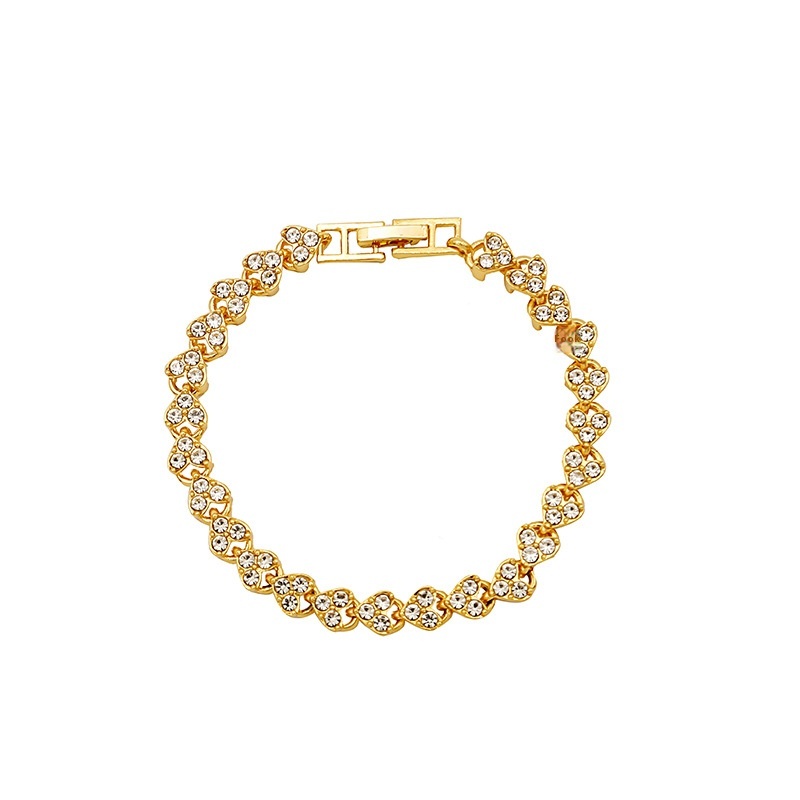 Korean Jewelry Women's Diamond Heart-shaped Bracelet Diamond Electroplated Real Gold Couple Bracelet Jewelry Gift