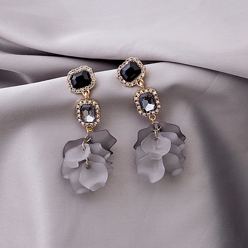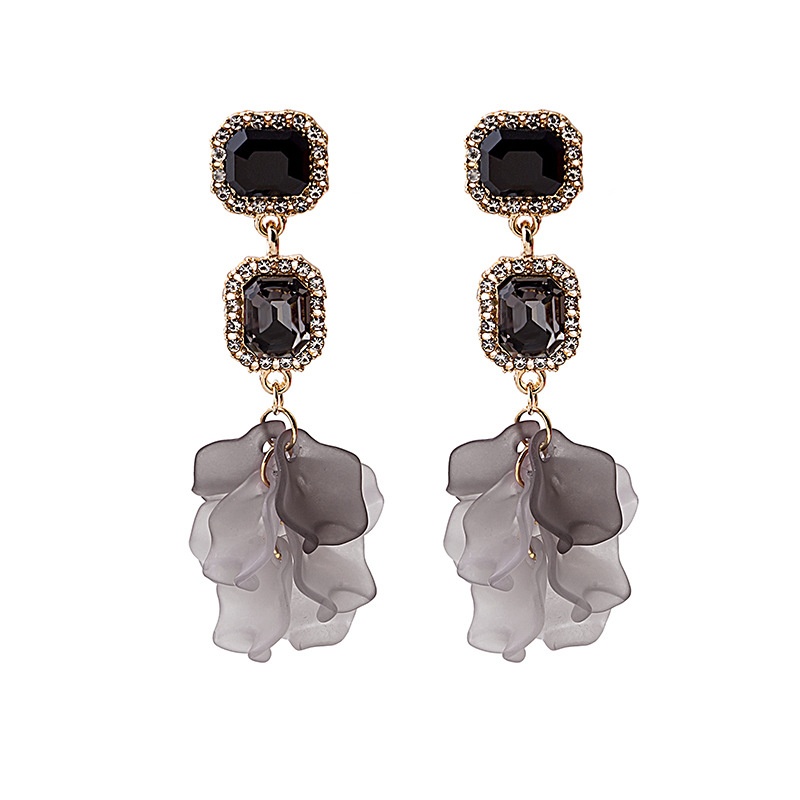 925 Silver Needle Retro Palace Irregular Acrylic Crystal Black Rose Petal Earrings Net Red Contrast Color Earrings