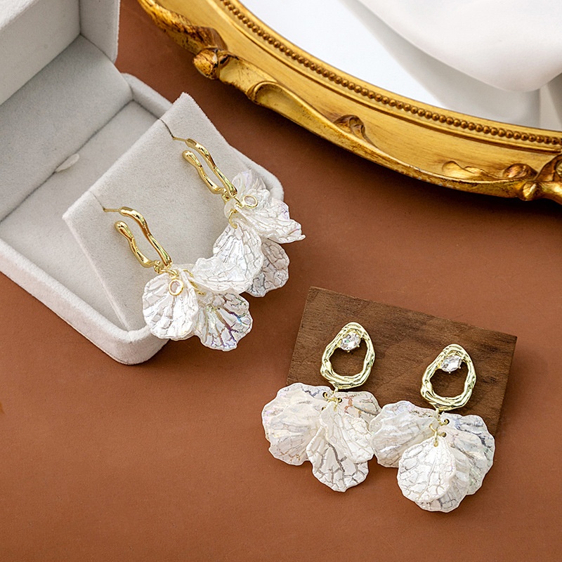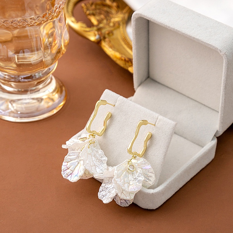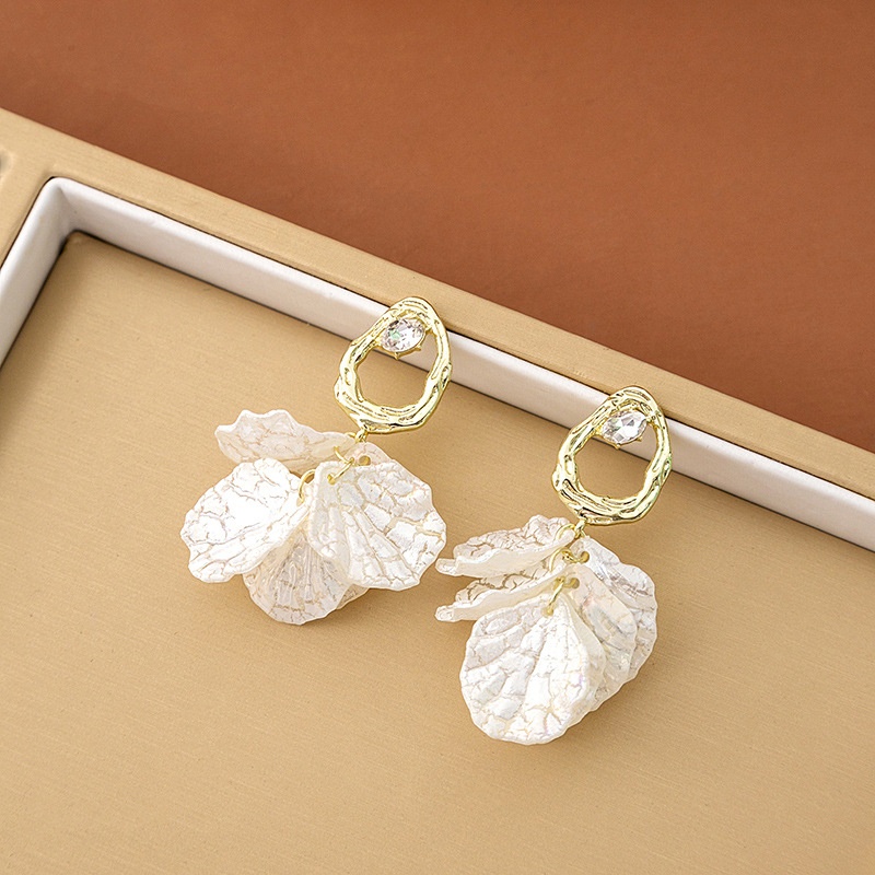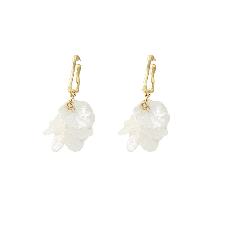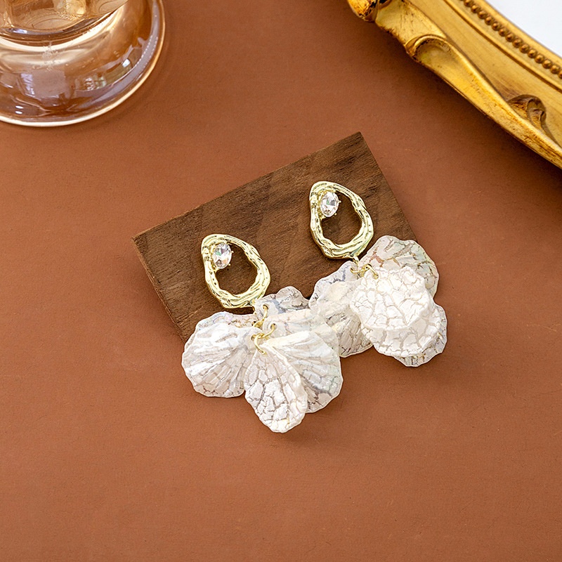 French Sweet And Elegant Flower Earrings Niche Design White Crack Earrings Light Luxury High-end Earrings For Women